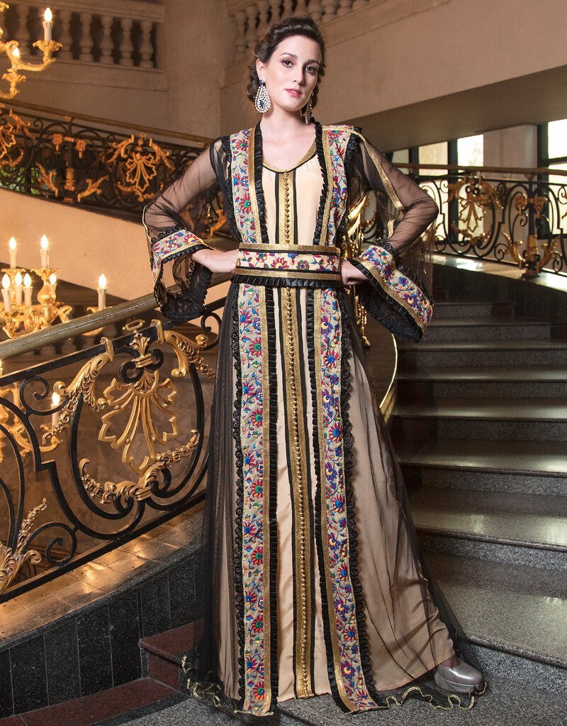 - Women Hand beaded Caftans made with high quality materials, drawn by bead and crystals decor.