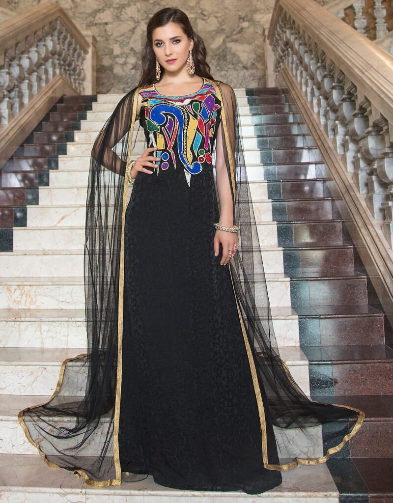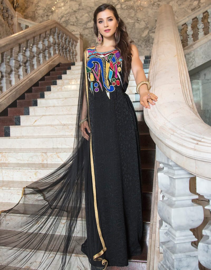 - Women Hand beaded Caftans made with high quality materials, drawn by bead and crystals decor.
