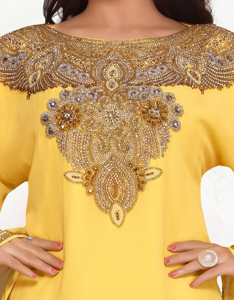 - Women Hand beaded Caftans made in Chiffon with high quality materials, drawn by bead and crystals decor.