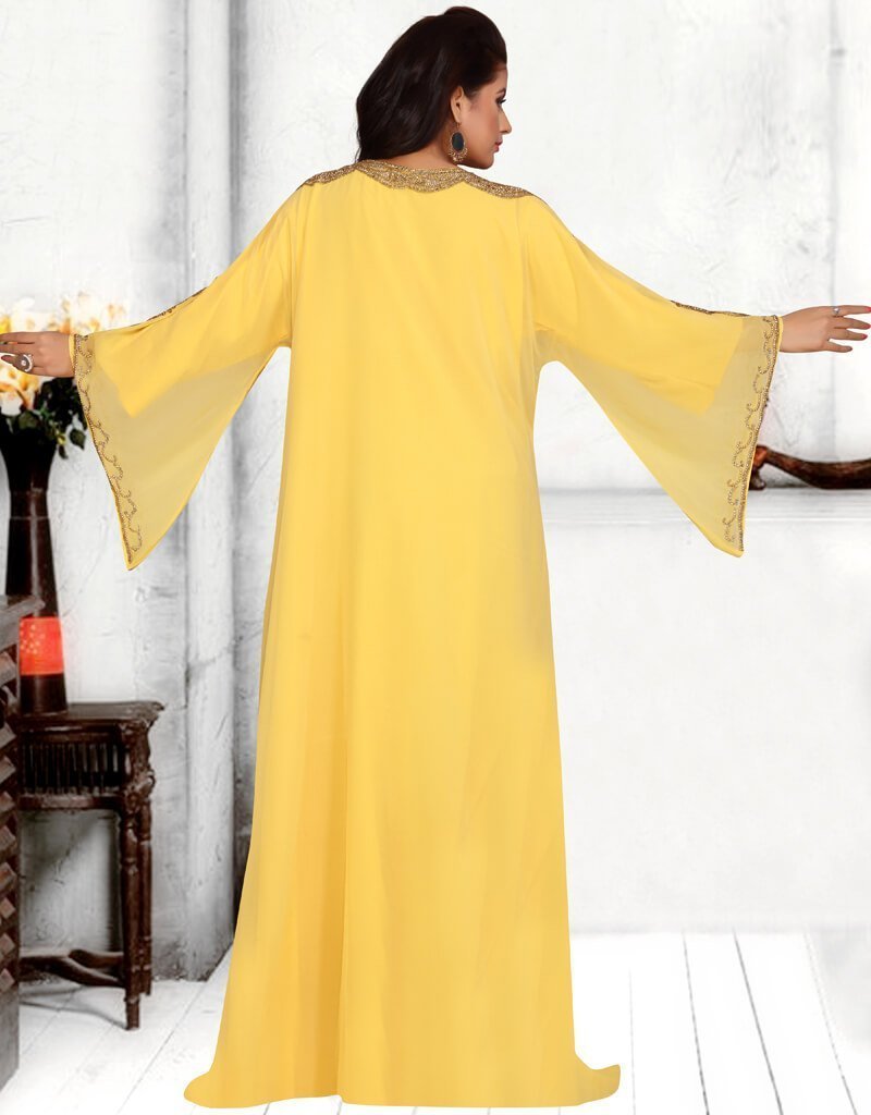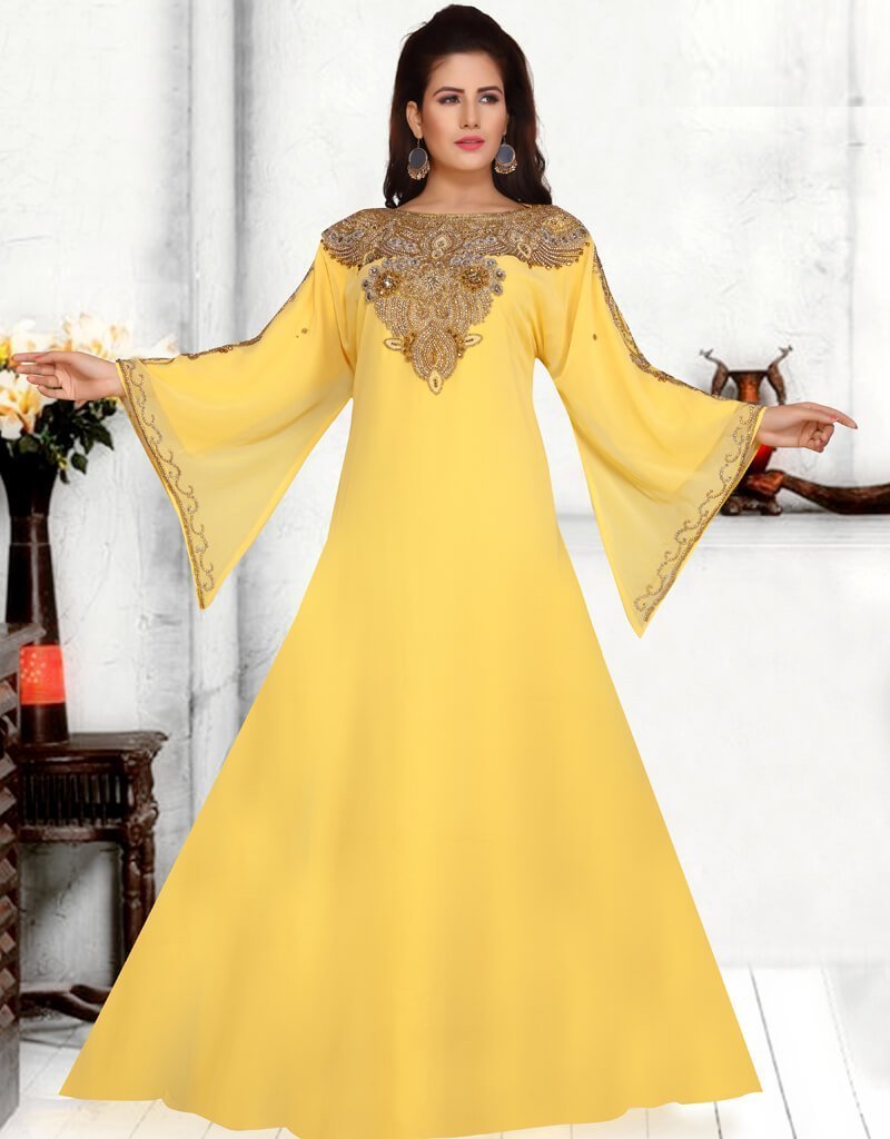 - A Line kafan dress for women. Designer full sleeve with full handbeaded establishments. Broad neak pattern kaftan dress