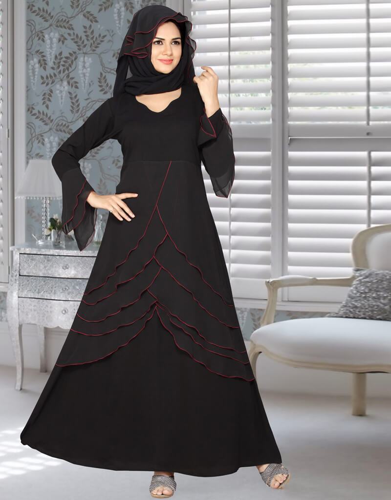 - A-line Maxi Style Frill Sleeve Kaftan in Georgette Fabric and Black Color with Aline Style