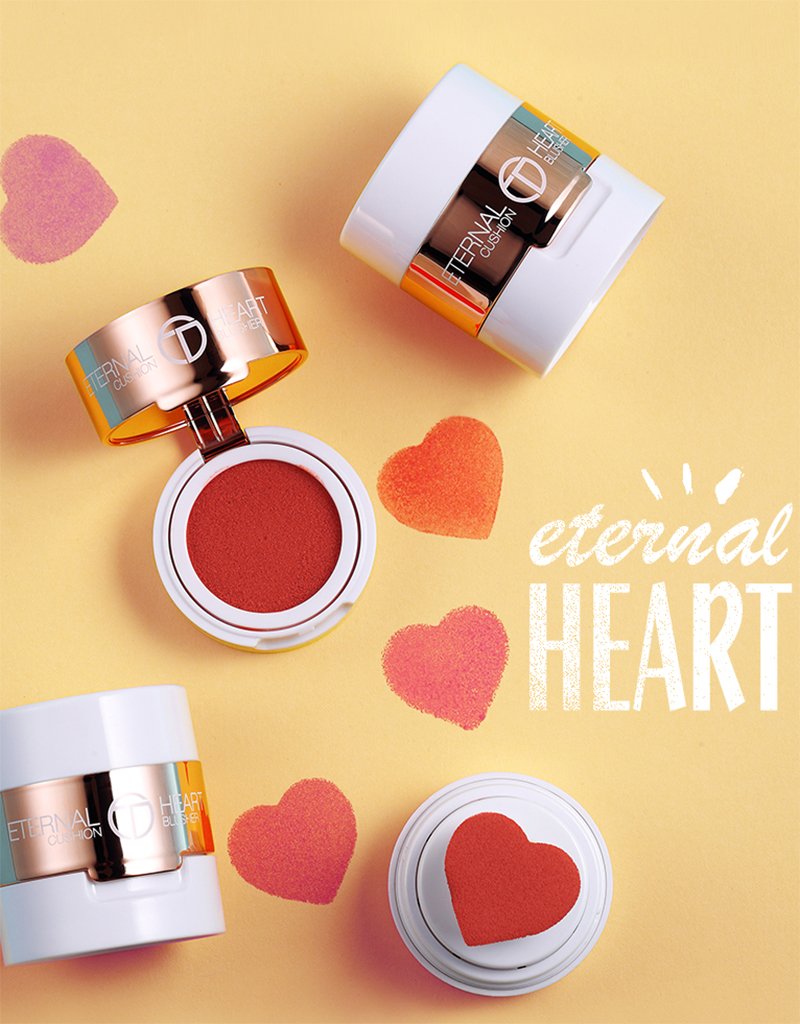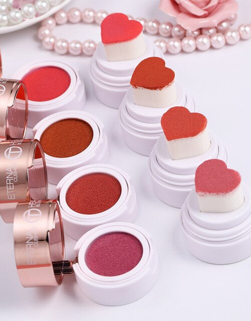 This cushion-blush formula has a heartshaped applicator that can show cheeks some love. You can also gently wear the blush with your fingertips or sponge to get a natural flush of color. moisturized long-wearing blush. feels lightweight like a powder, melts into skin likea cream.