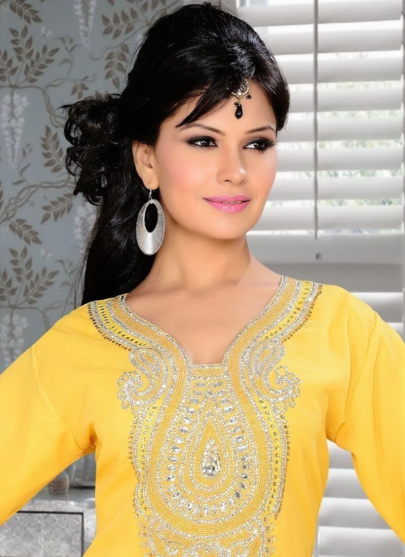 - Ravishing Attire To Enhance Your Beauty. All Of This Accenting The Feminine Beauty, With This Attractive Yellow Salwar Kaftan .The Brilliant Attire Creates A Dramatic Canvas With Amazing Embroidery Work.