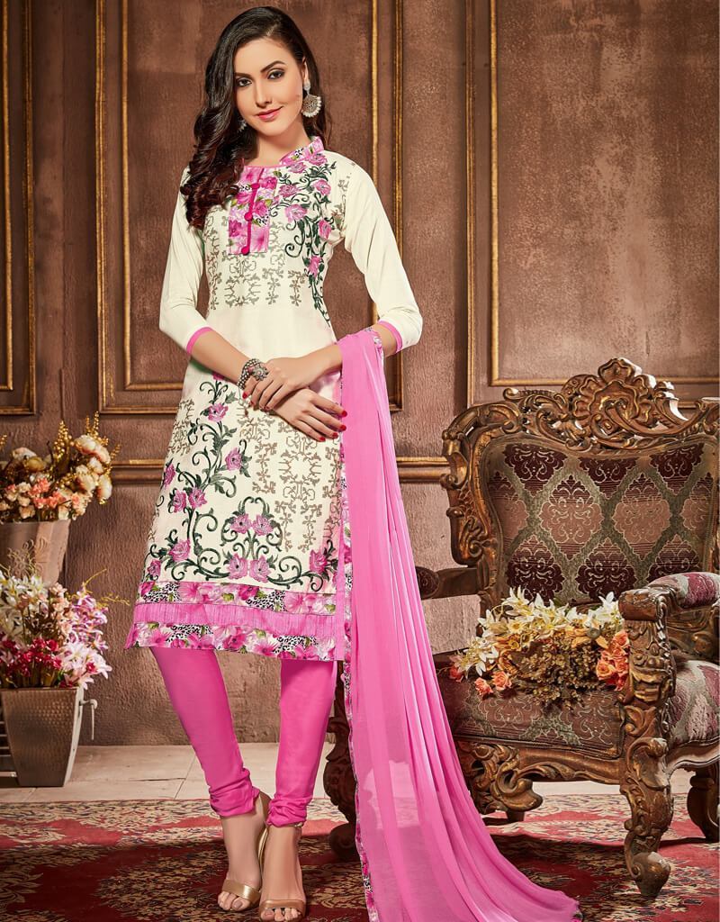 Office Wear Straight Baby Pink Colored Glazz Cotton Top With Pink Colored Semi Loan Bottom.