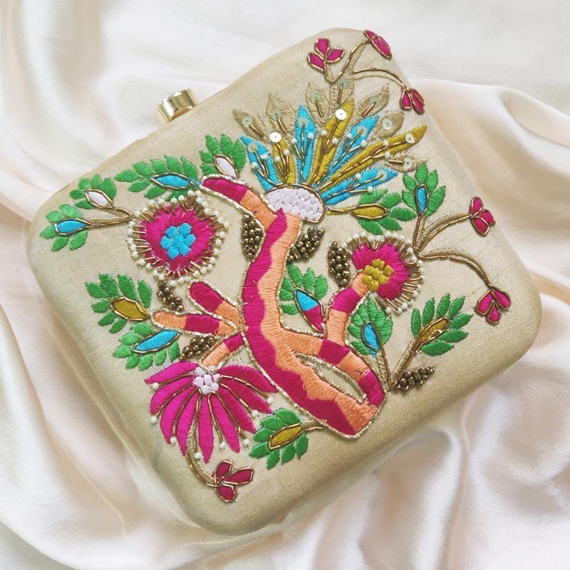 Beige Classic Designer Synthetic Clutches