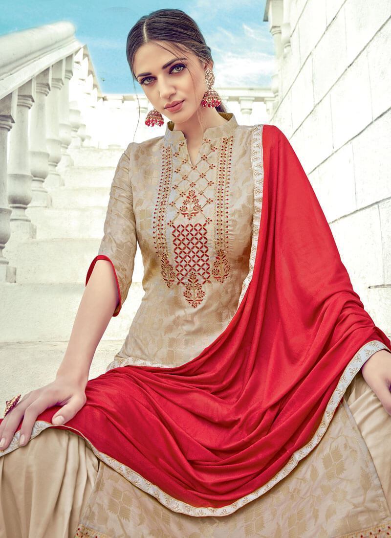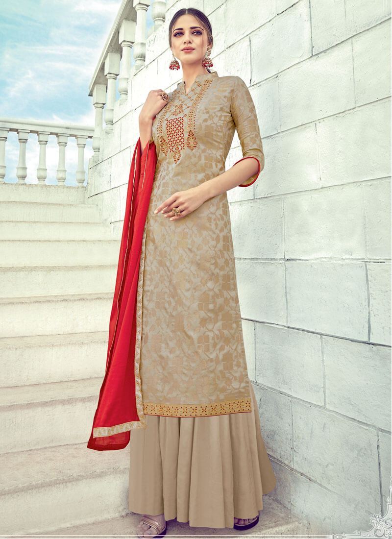 Beige Pure Banarasi Jacquard Palazzo Dress