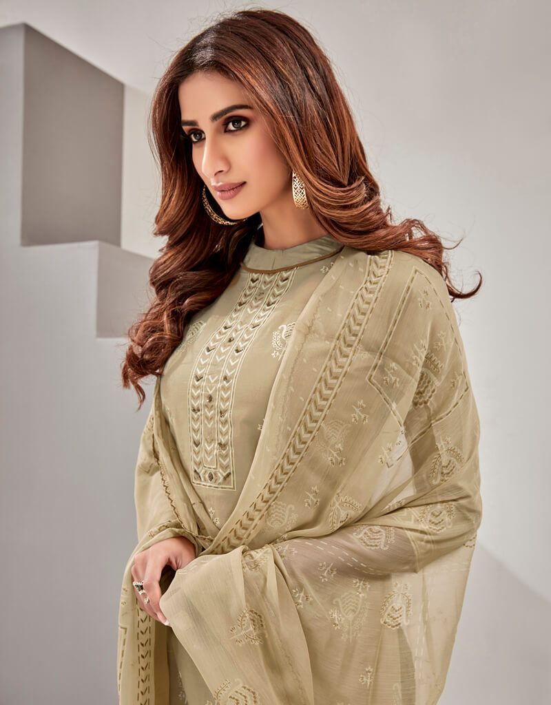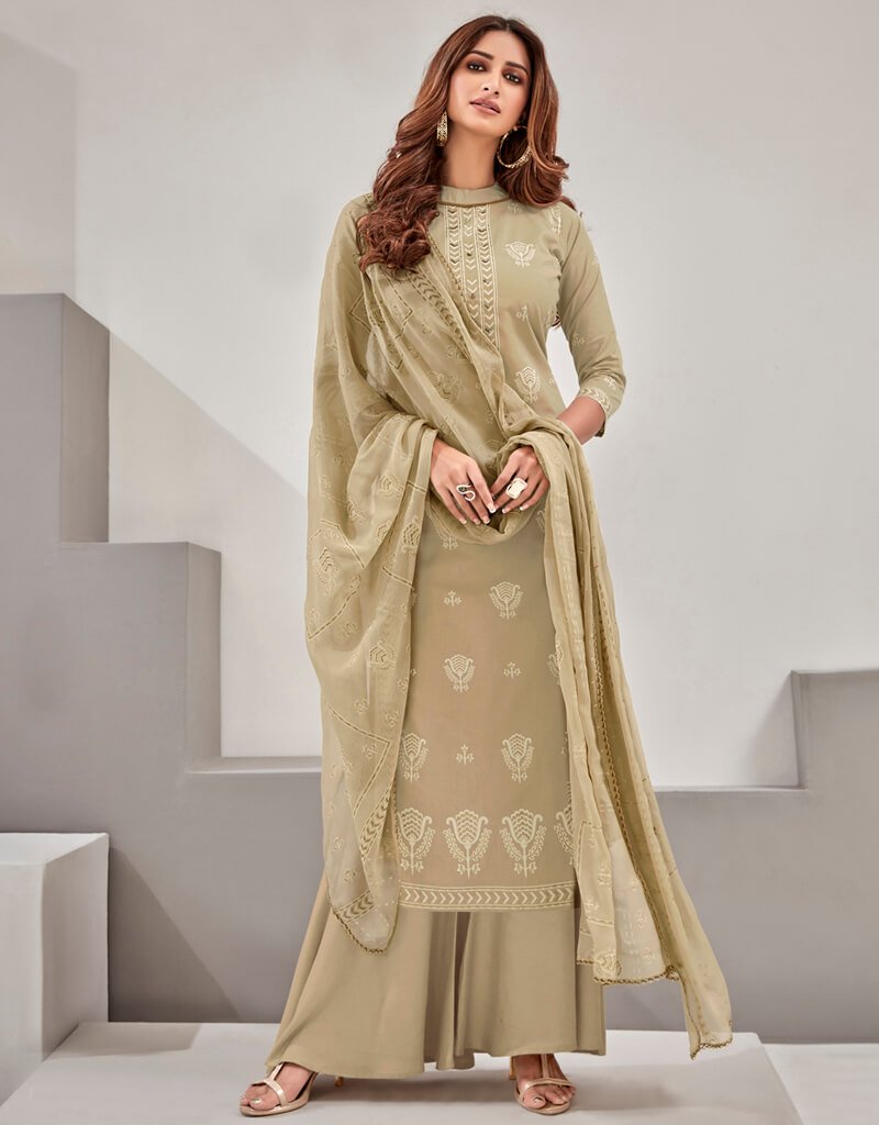 Beige Pure Lawn Cotton Palazzo Salwar Suits