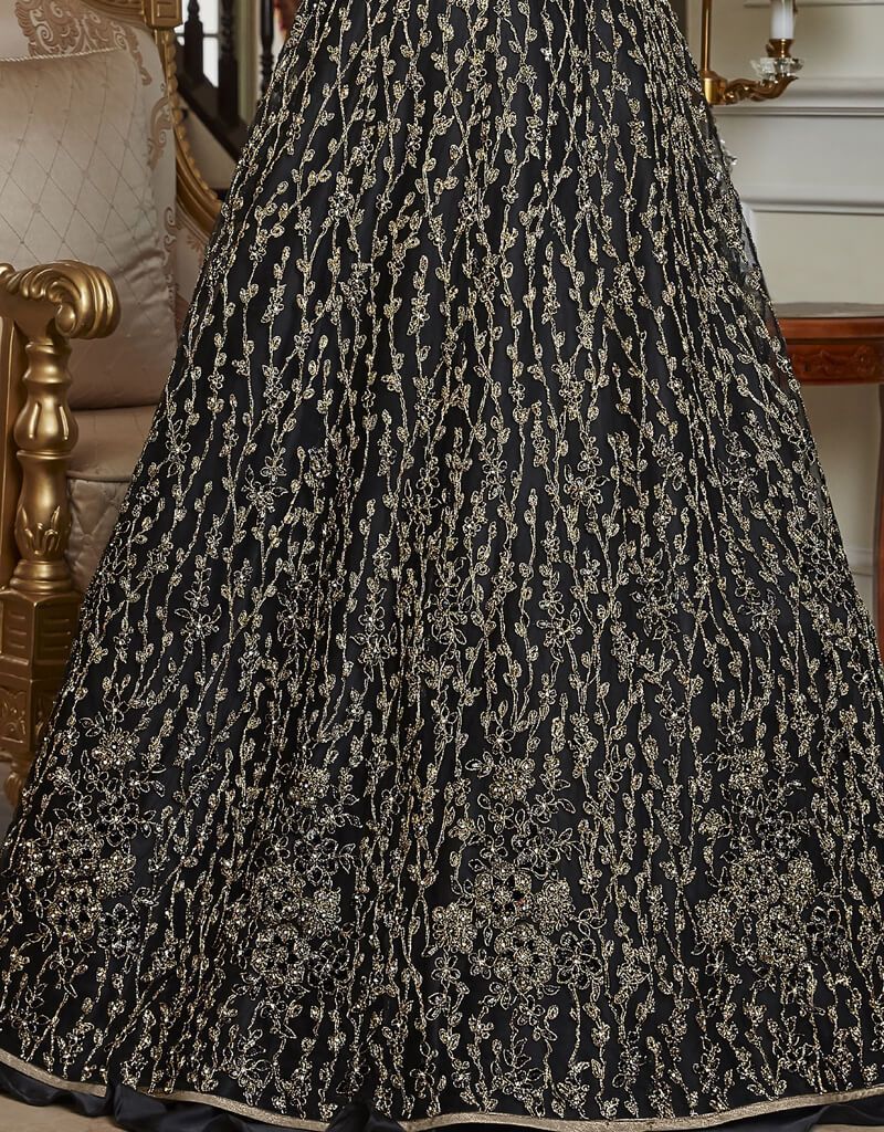 luxury Women Black colored Salwar Kameez in Anarkali Style made with Net top and Net Bottom fabric