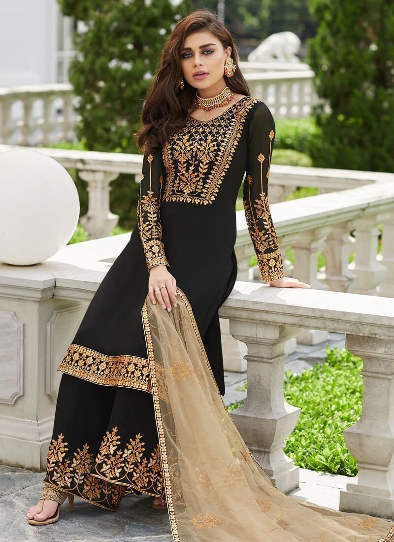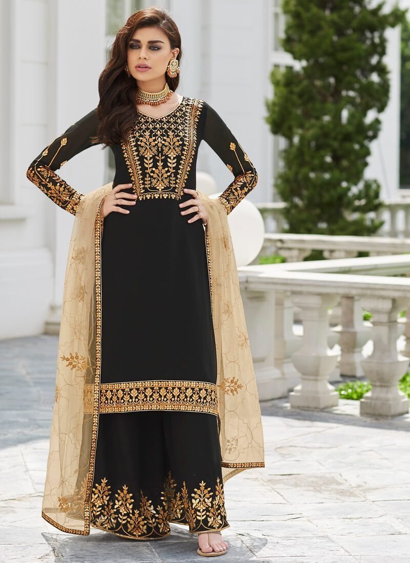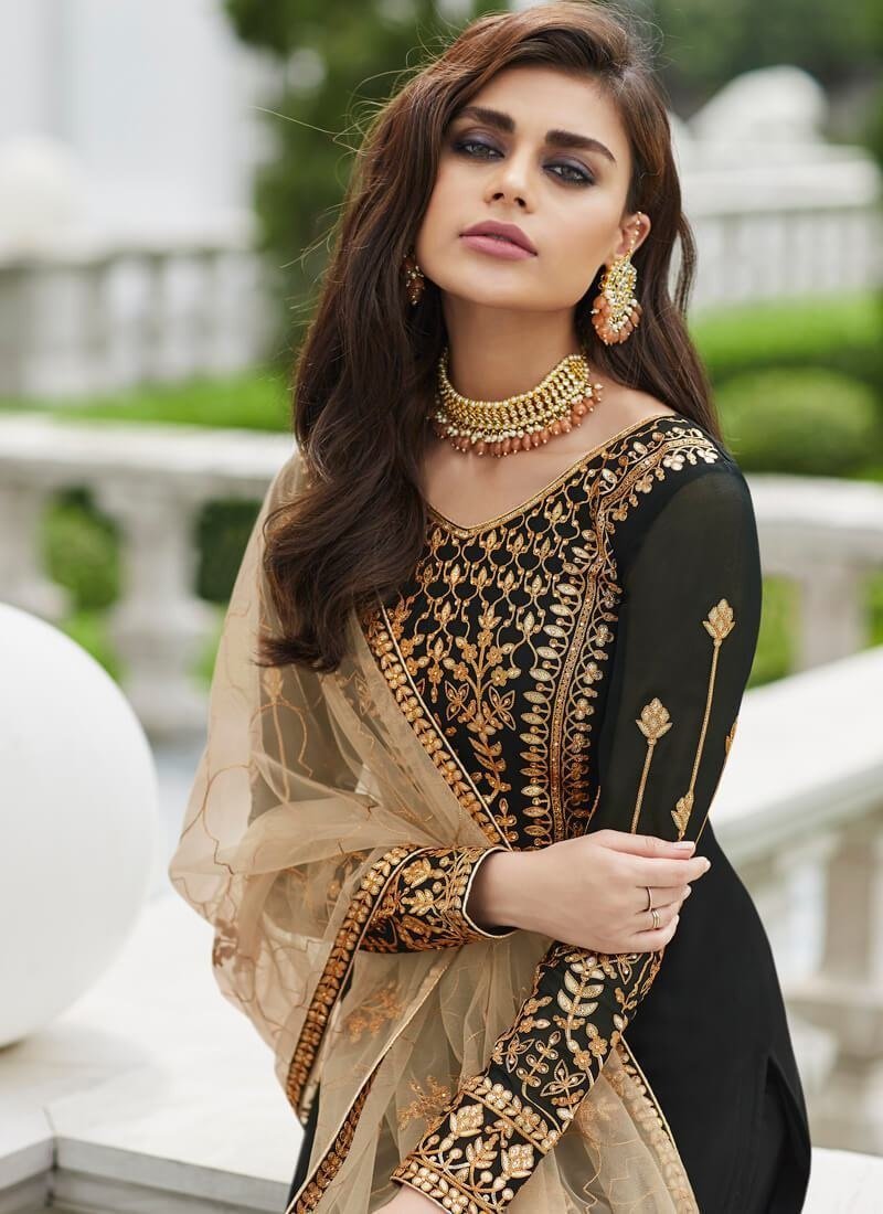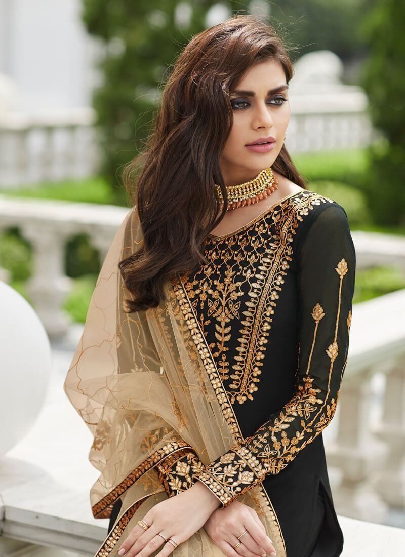 Arabic Muslim Black colored Salwar Kameez in Anarkali Style made with Real Georgette top and Real Georgette Bottom fabric