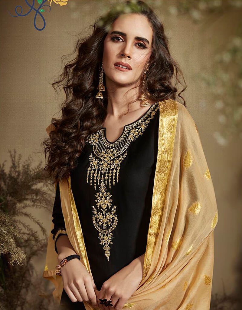Work : Embroidred Work With Jari Border Butta Dupatta