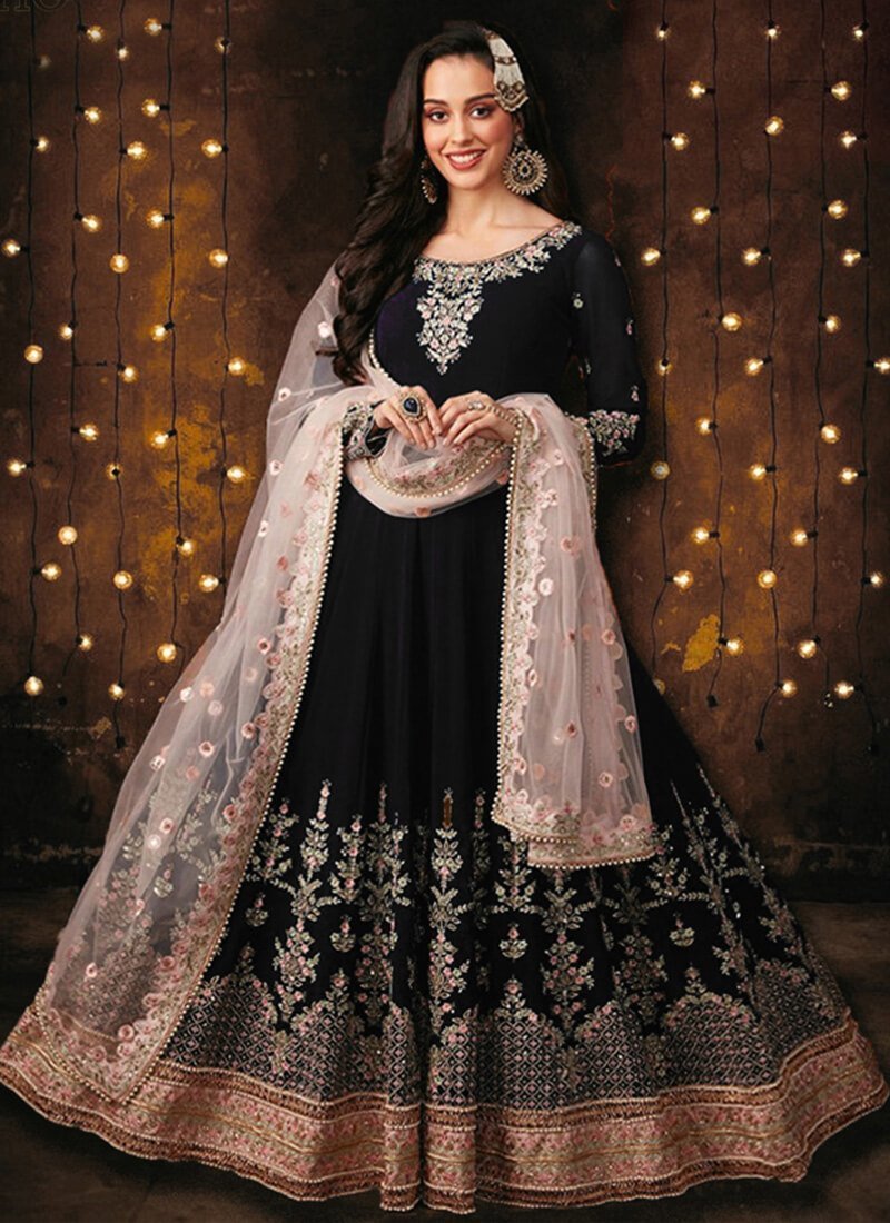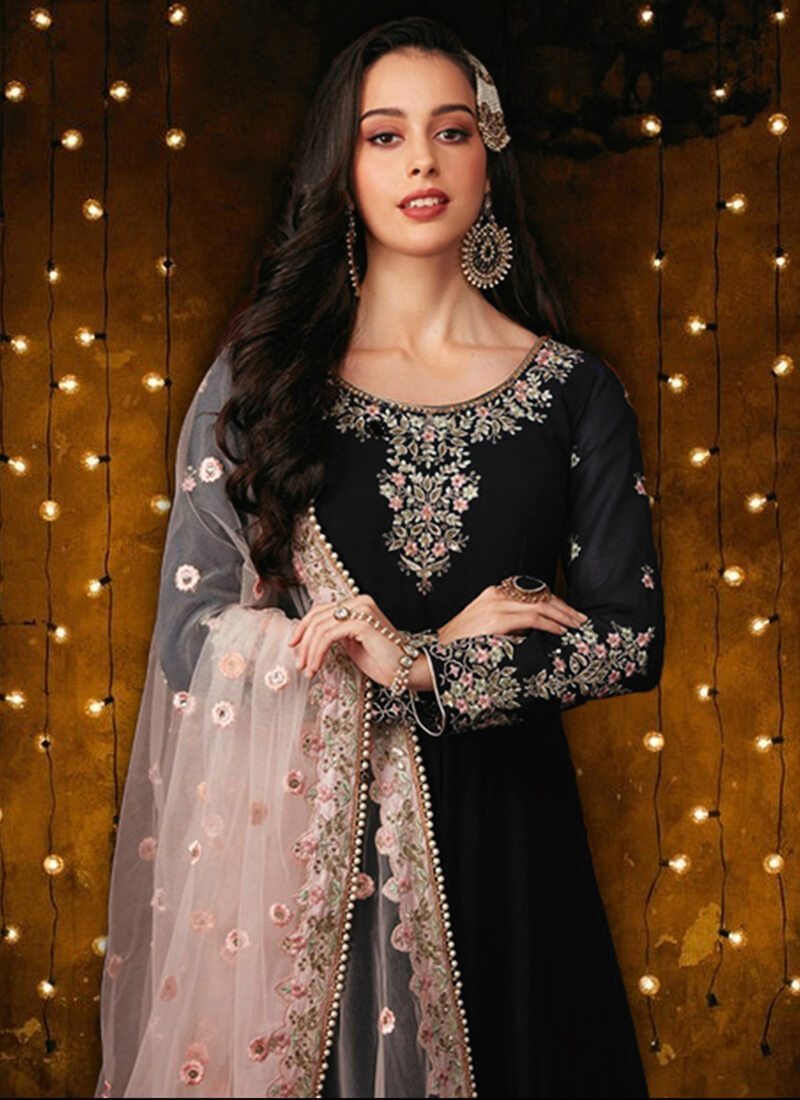 Black Heavy Foux Georgette Anarkali Suit