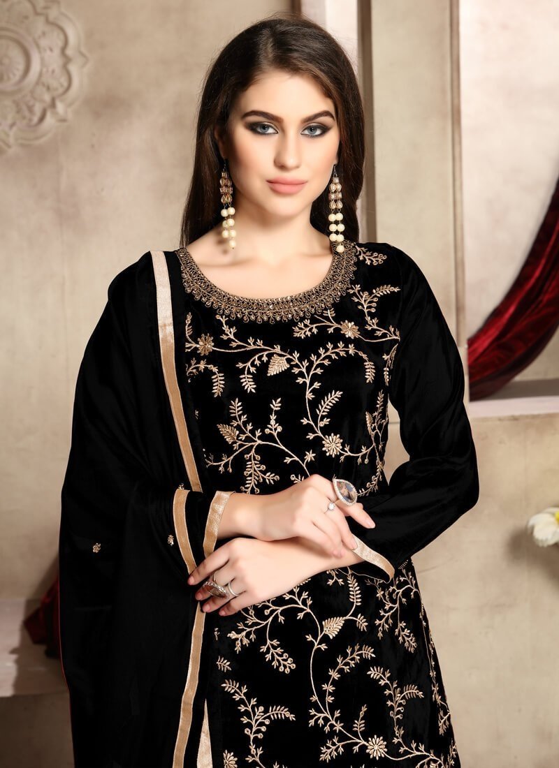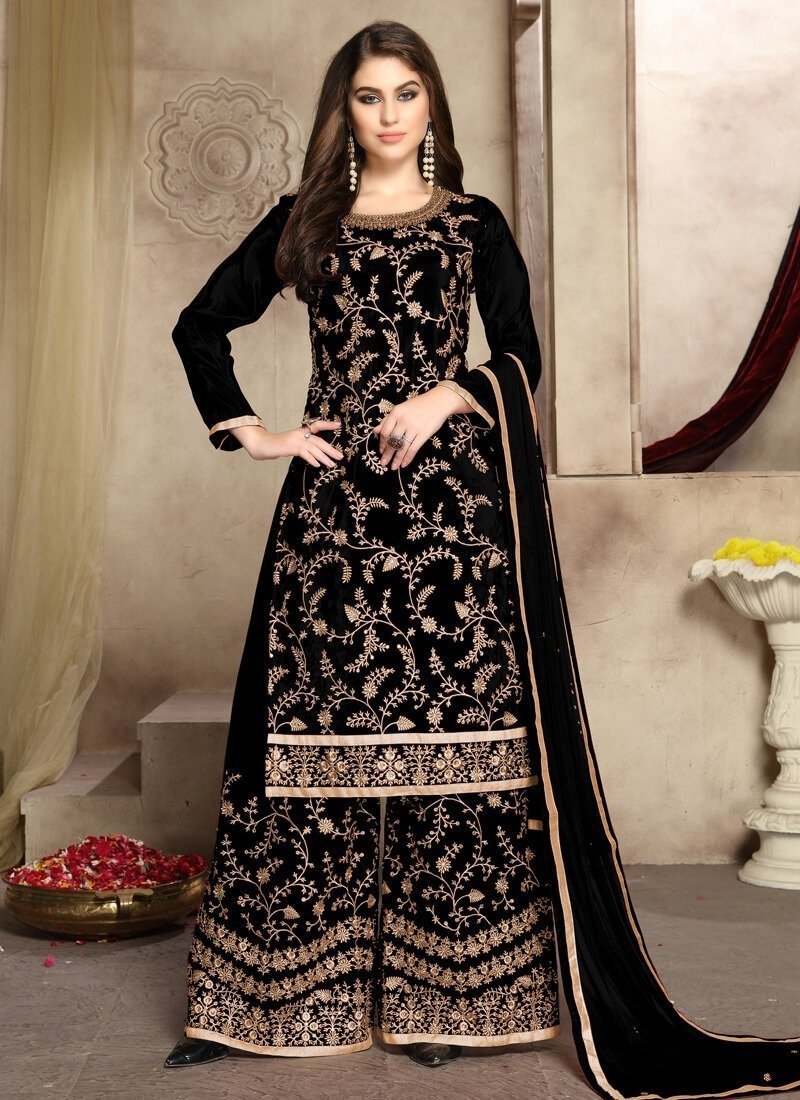Arabic Muslim Black colored Salwar Kameez in Palazzo Style made with Net top and Georgette Bottom fabric
