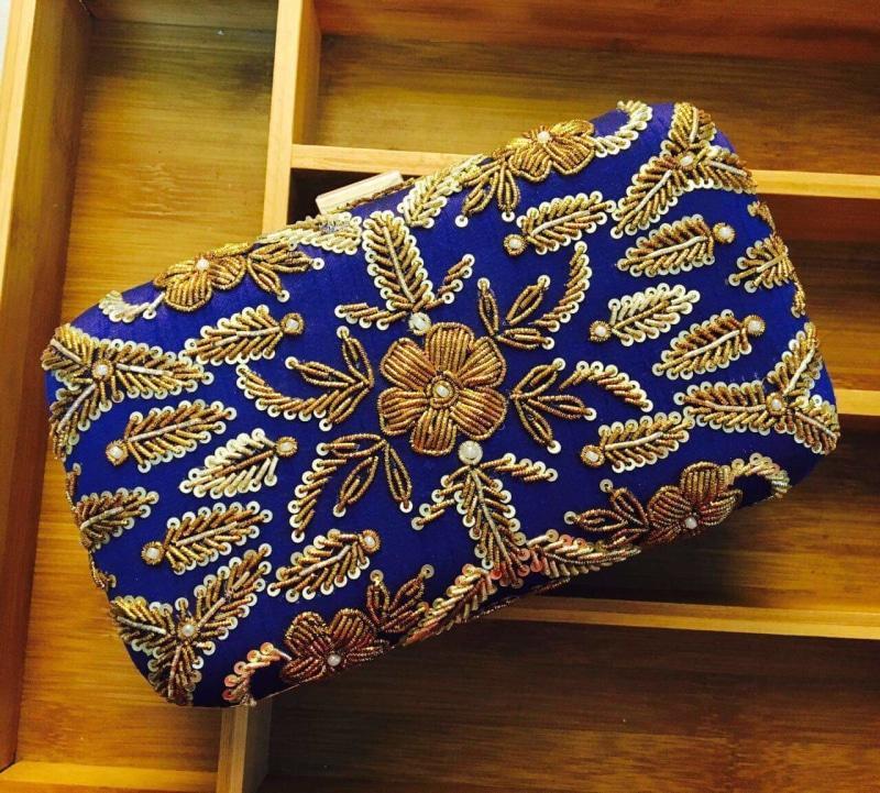 Blue Classic Women Embroidered Clutches