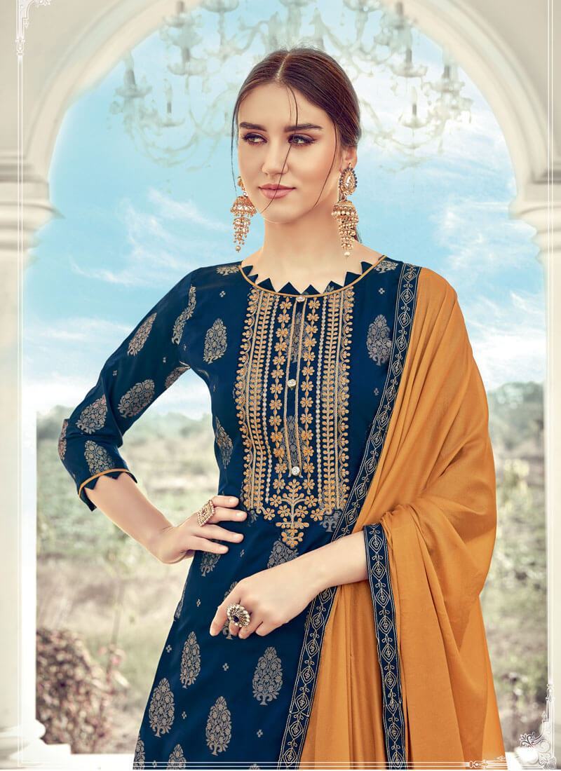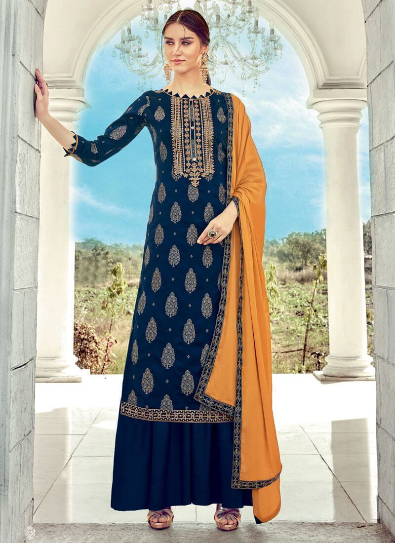 Designer Party Wear Pure Banarasi Jacquard Plazzo Suit