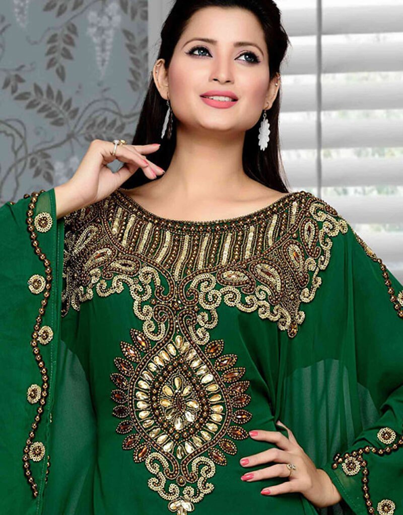- Women Hand beaded Caftans made in Chiffon with high quality materials, drawn by bead and crystals decor.