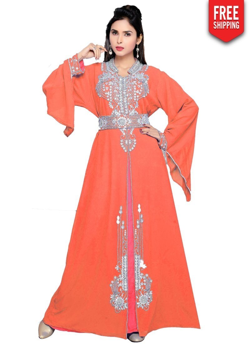 - Women Hand beaded Caftans made in Chiffon with high quality materials, drawn by bead and crystals decor.