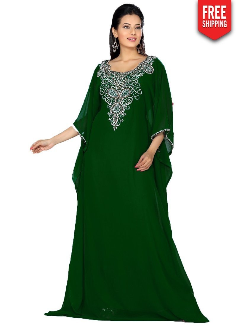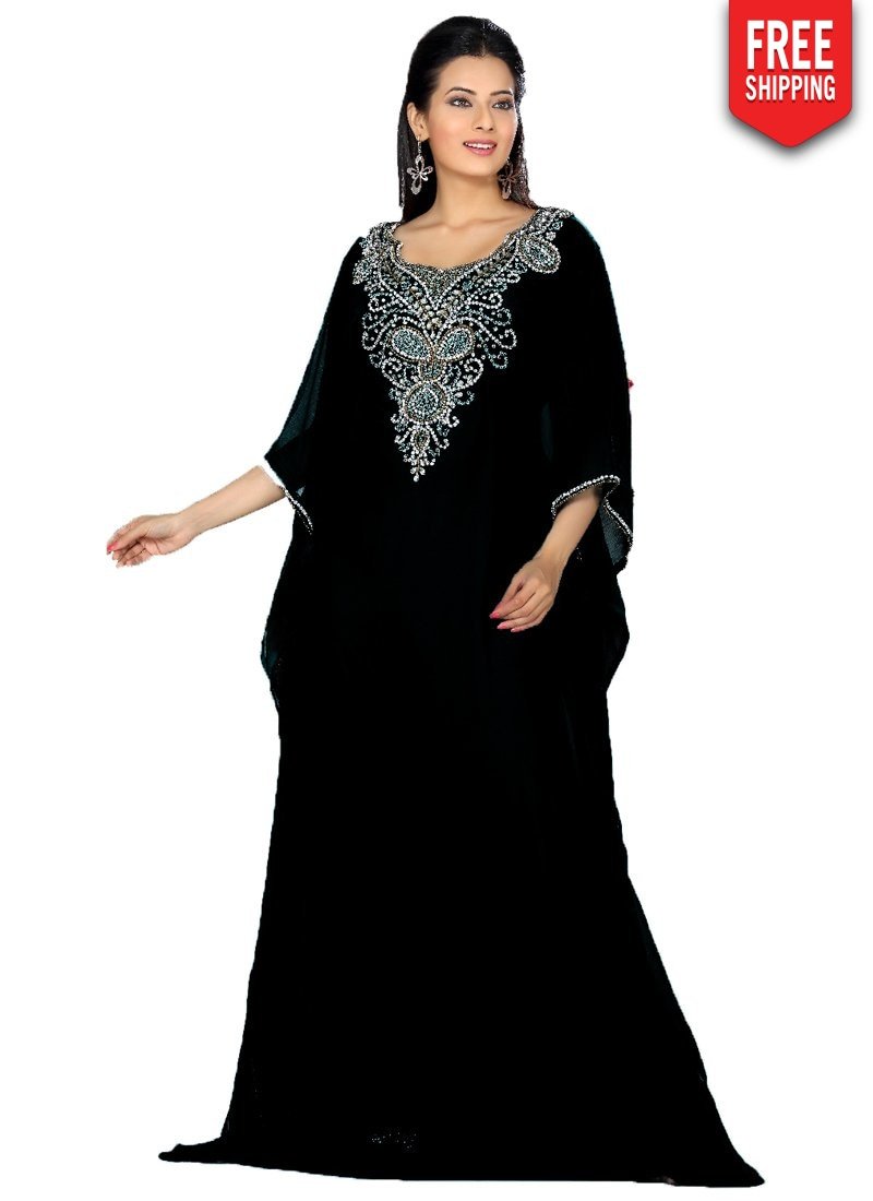 - Women Hand beaded Caftans made in Chiffon with high quality materials, drawn by bead and crystals decor.