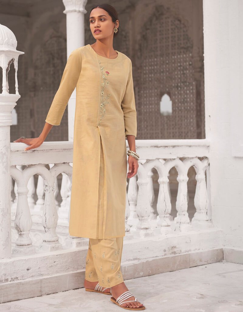 Designer Party Wear Readymade Linen Cotton Kurta With Bottom