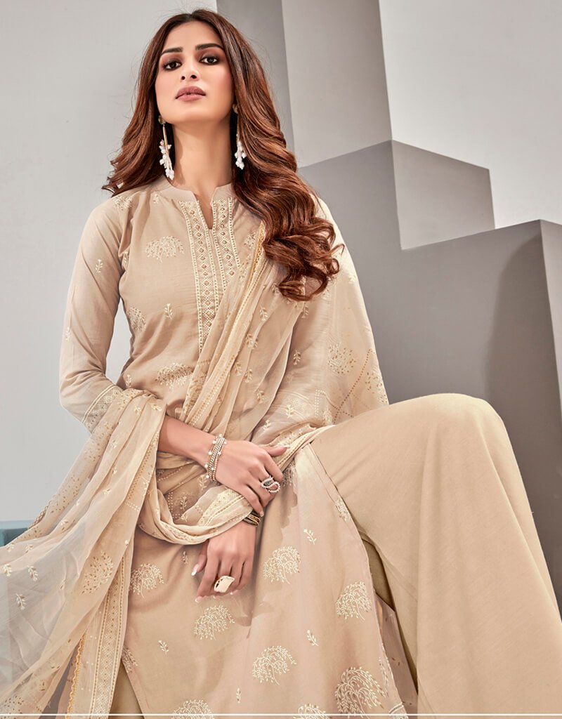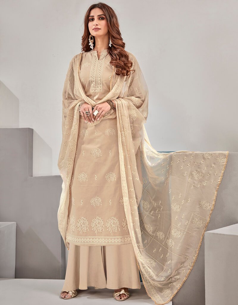 Cream Pure Lawn Cotton Palazzo Salwar Suits