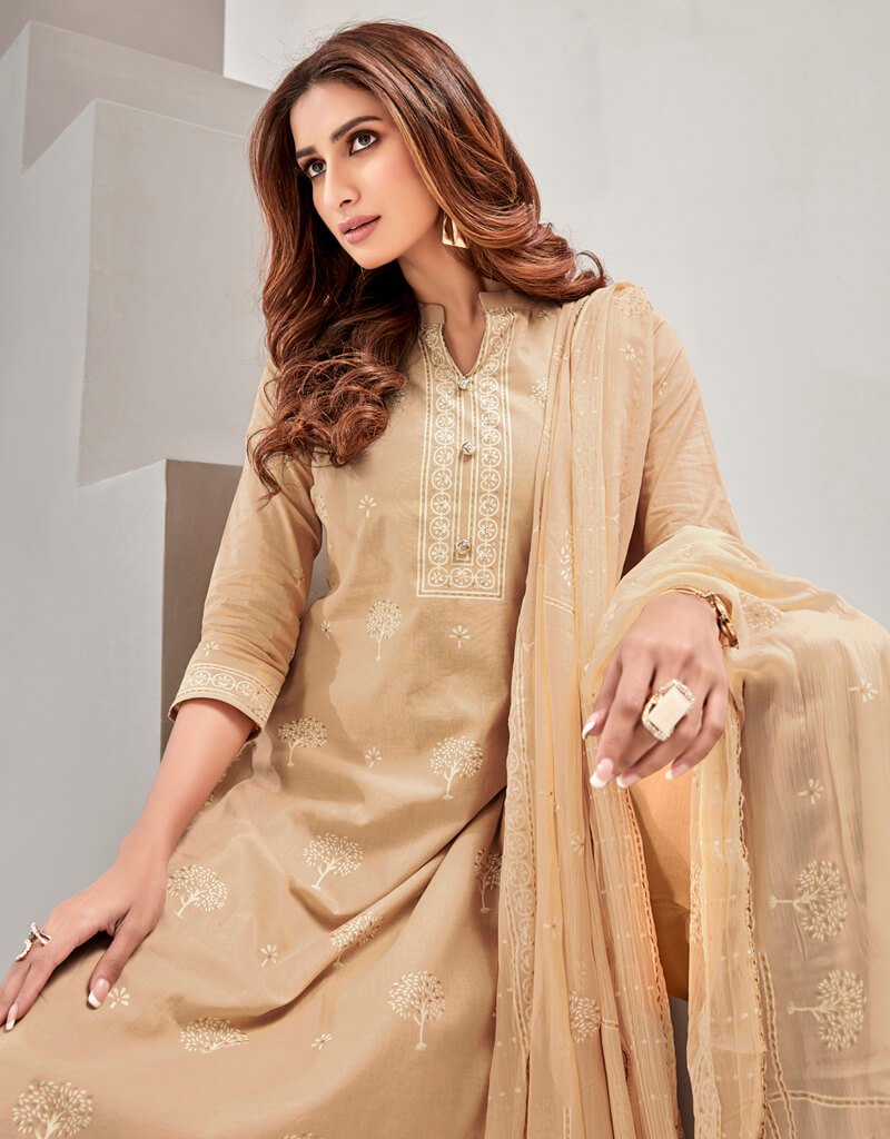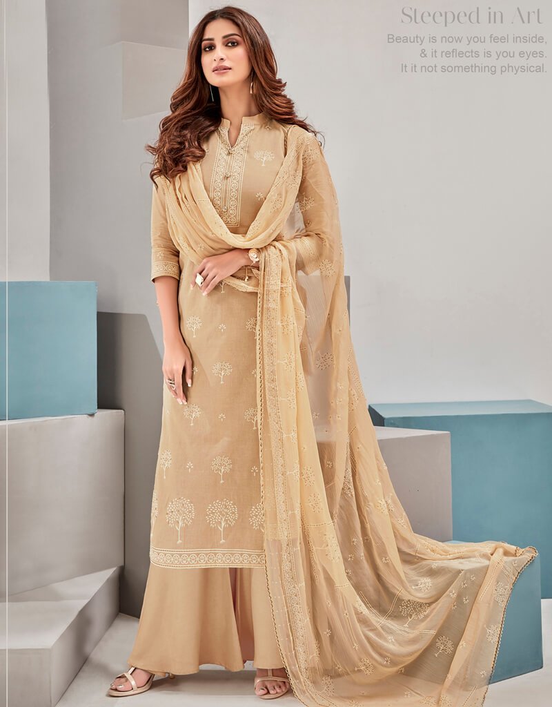 Cream Pure Lawn Cotton Palazzo Salwar Suits