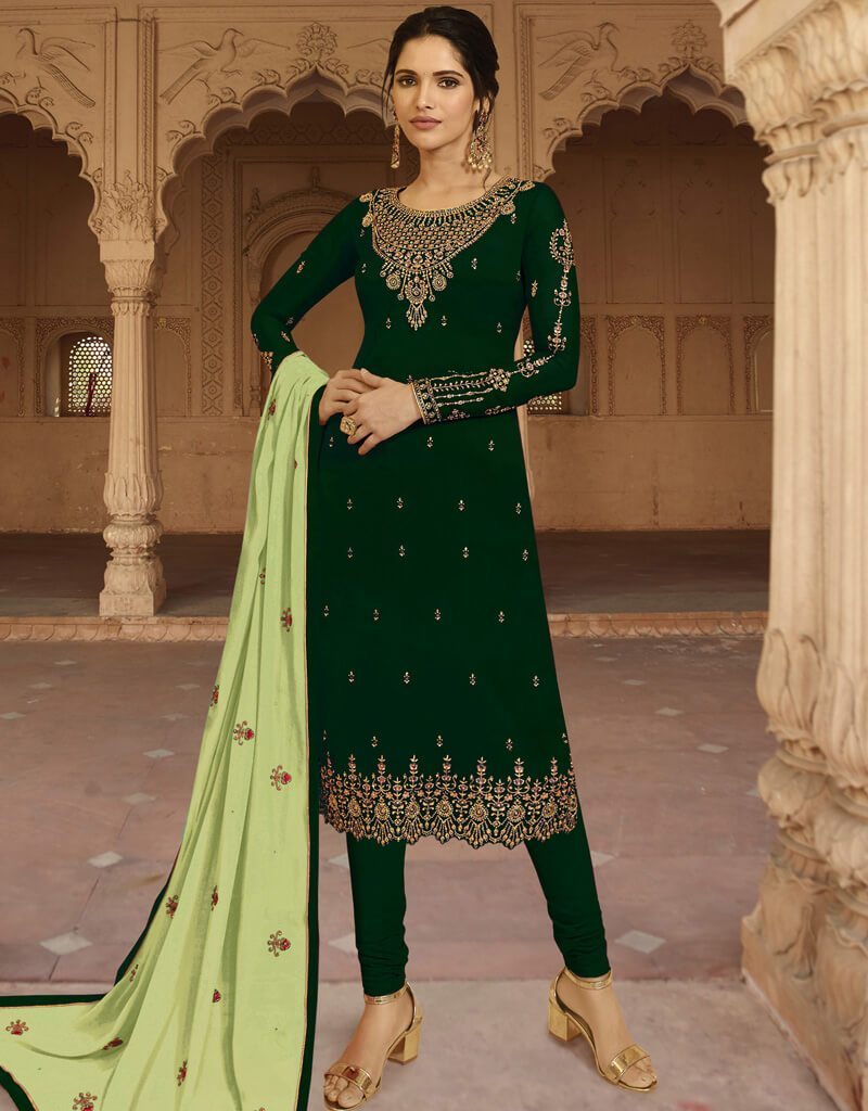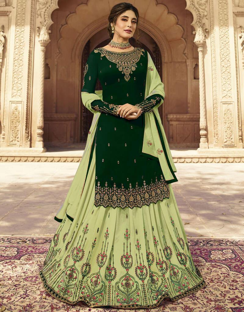 Dark Green Faux Georgette Lehenga Salwar Suits