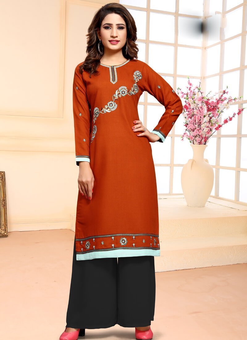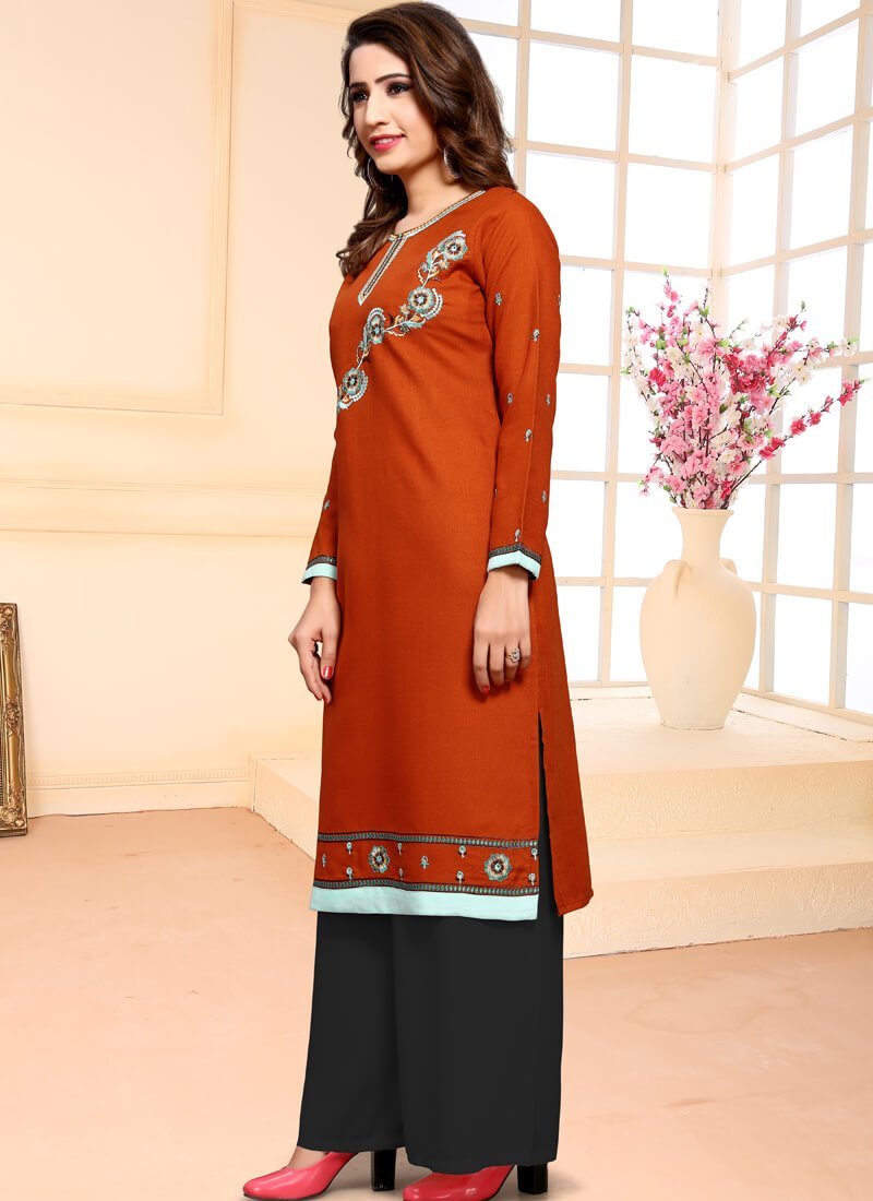 Casual Dark Orange colored Salwar Kameez in Pant Style made with NA top and Maslin Silk (2 Mtr.) Bottom fabric
