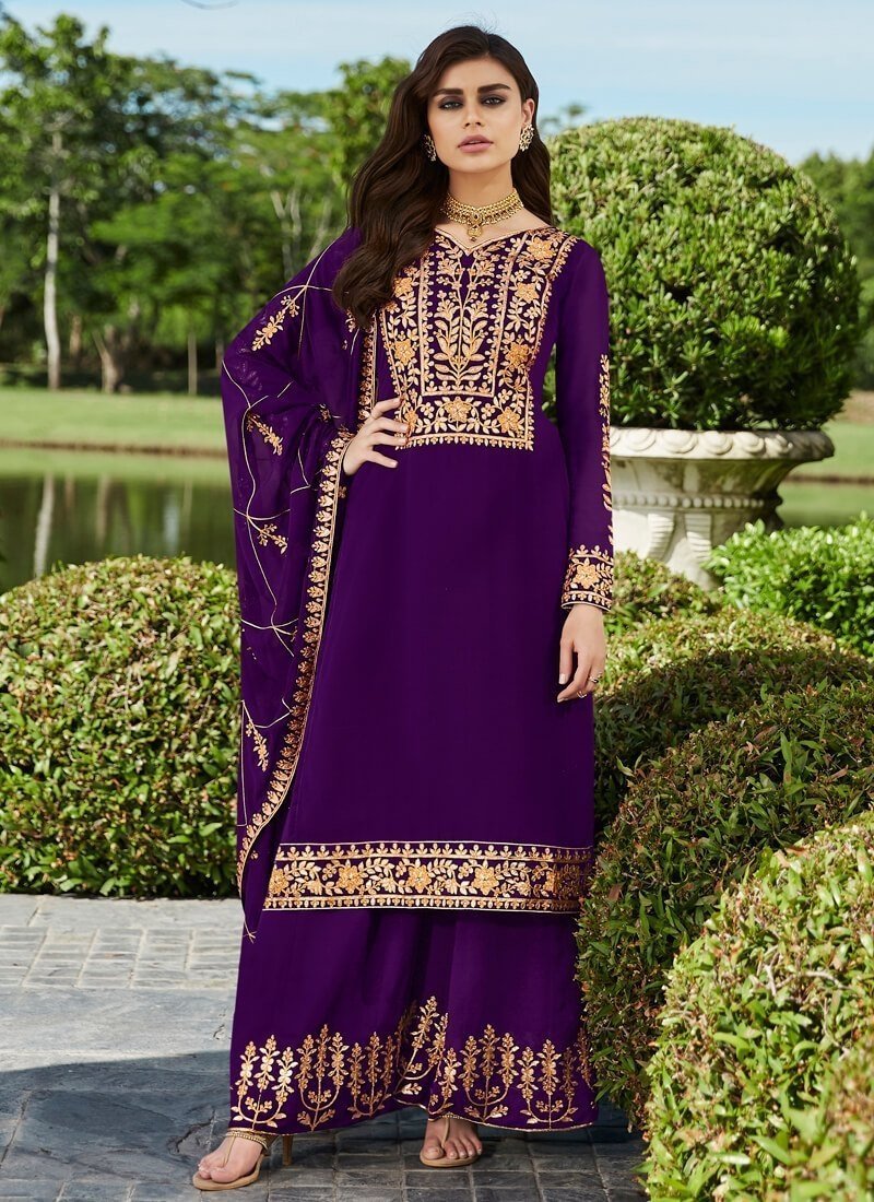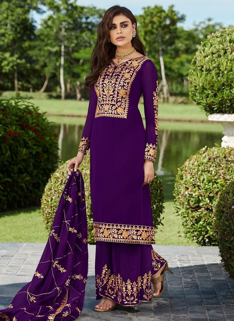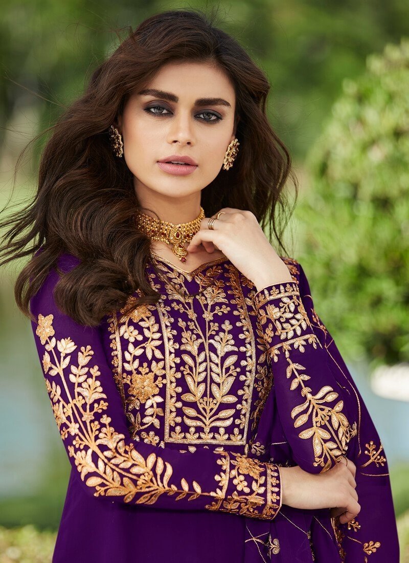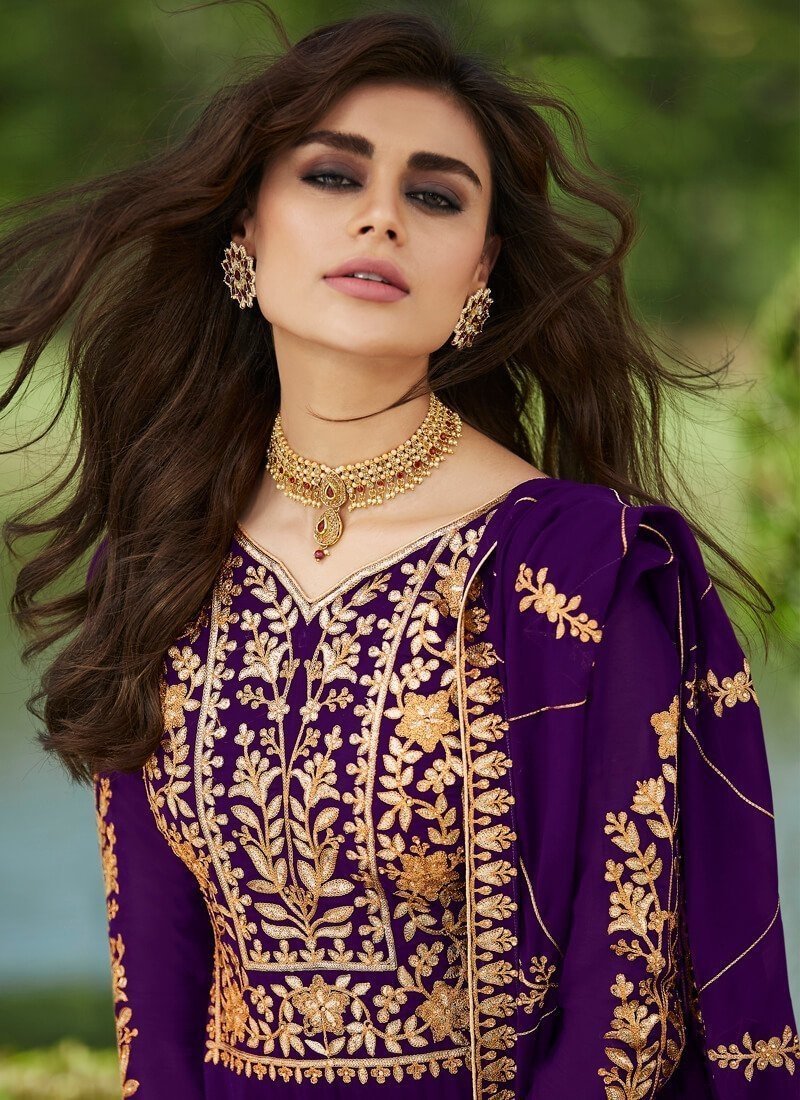 Arabic Muslim Dark Purple colored Salwar Kameez in Anarkali Style made with Real Georgette top and Real Georgette Bottom fabric