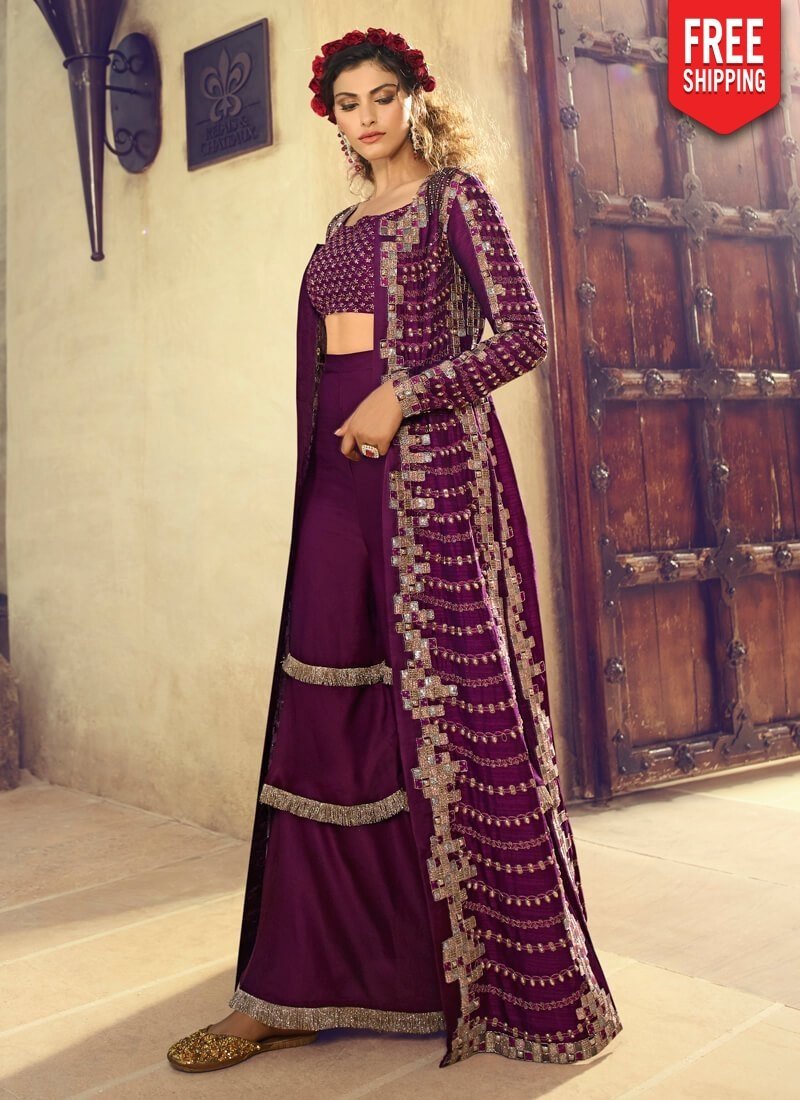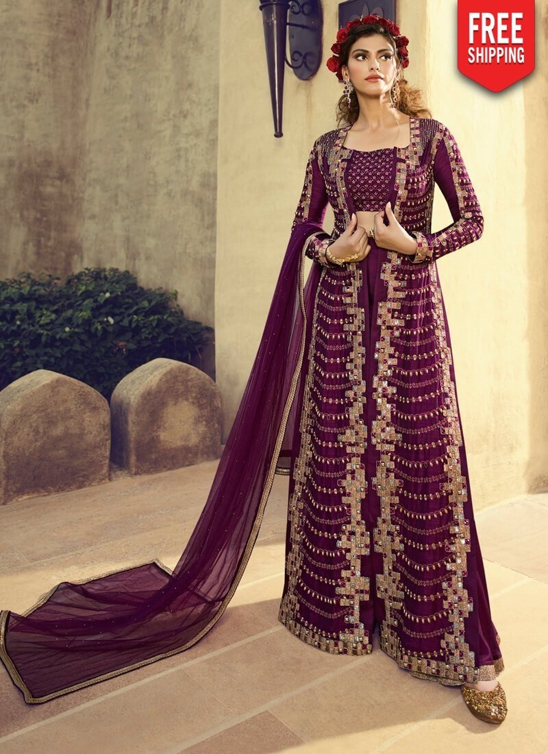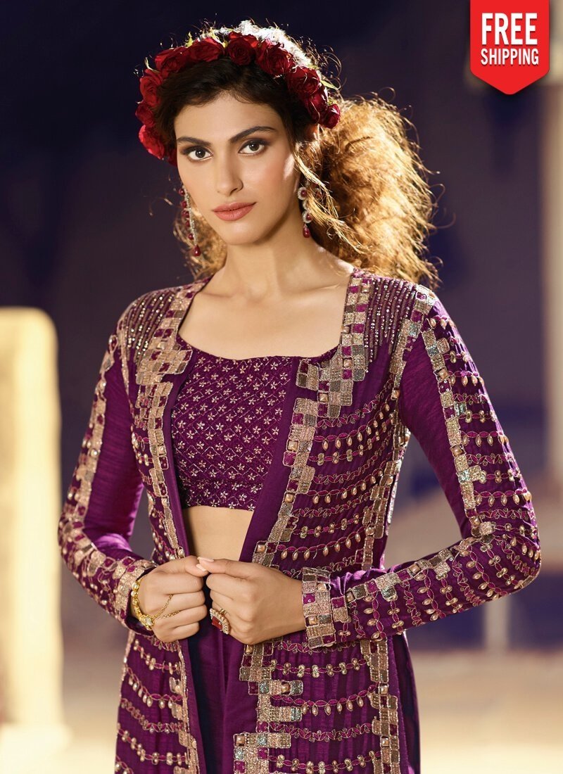 Dark Purple Anarkali style Suit Silk