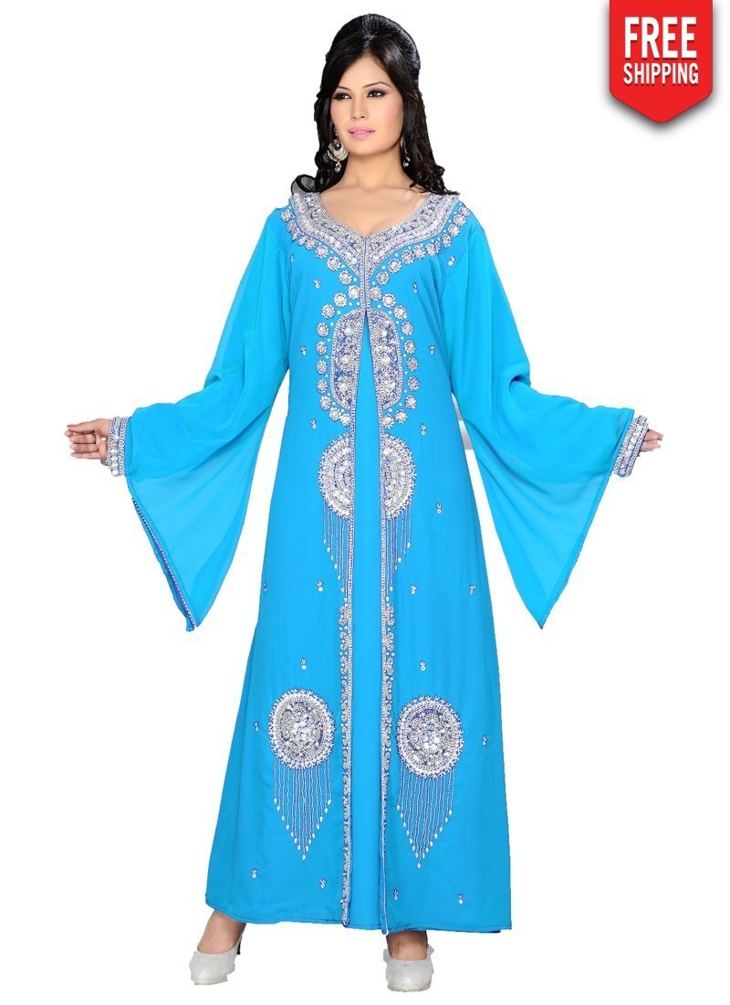 - Ravishing Attire To Enhance Your Beauty. All Of This Accenting The Feminine Beauty, With This Dashing Blue Jacket Style Kaftan.This Beautiful Attire Is Showing Beautifully Designed Embroidery & Hand Beaded Work.