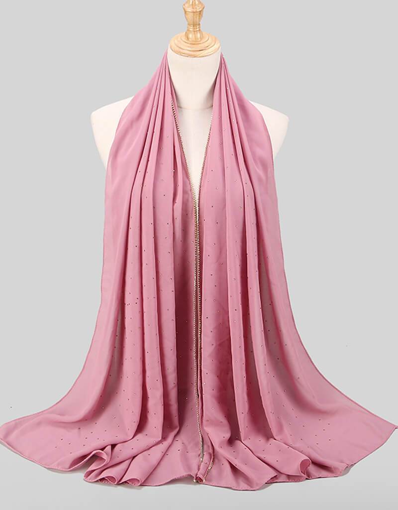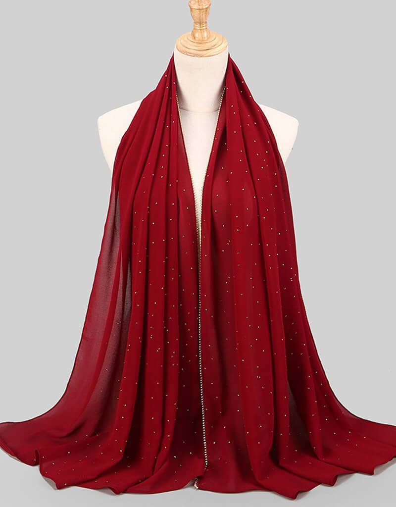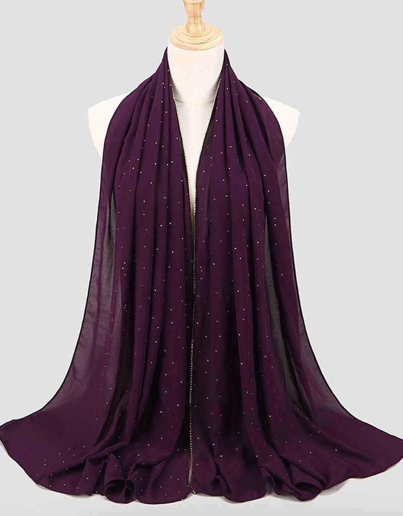 Women Diamond Lace Long Hijab made with fine quality Chiffon