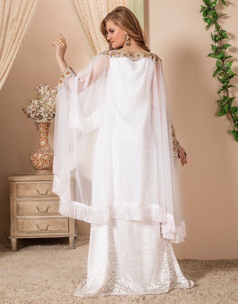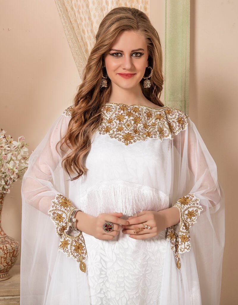 - Women Hand beaded Caftans made with high quality materials, drawn by bead and crystals decor.