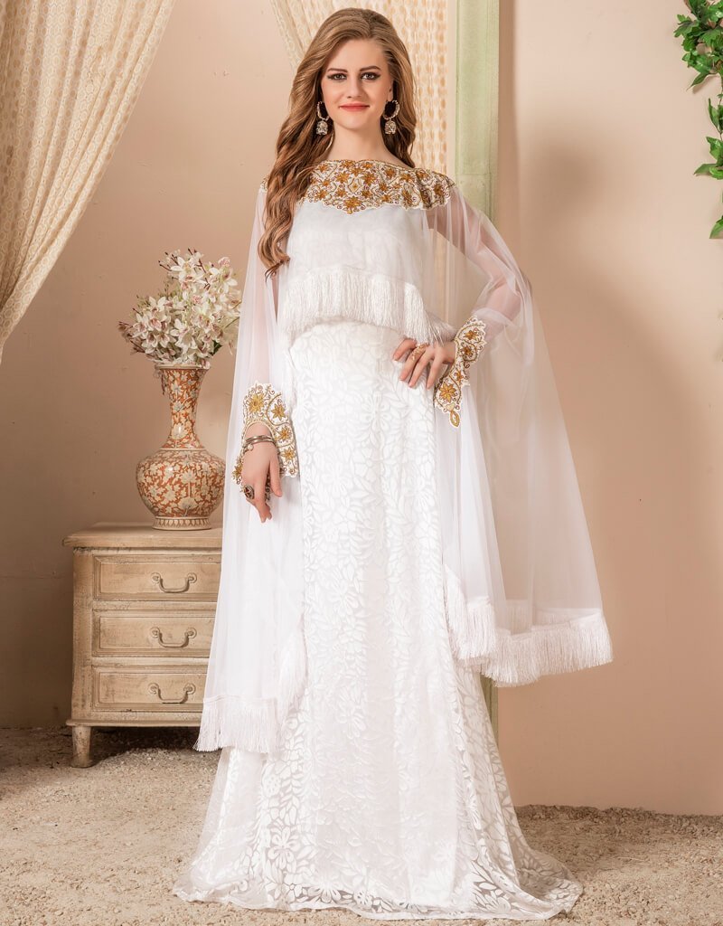 - Dubai Style Golden Work Kaftan With Cap Color in Brasso Fabric Printed Fabric with Golden Embroidered Color Establishment