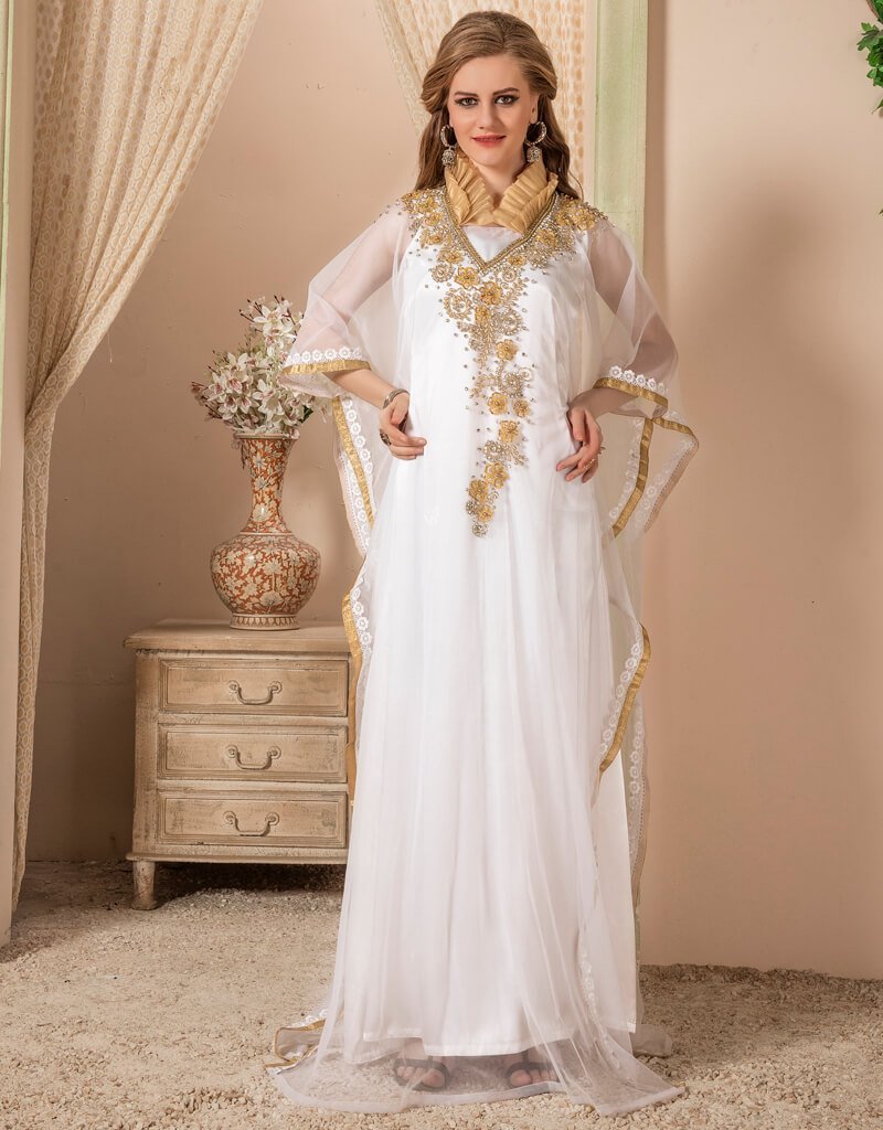 - Women Hand beaded Caftans made with high quality materials, drawn by bead and crystals decor.