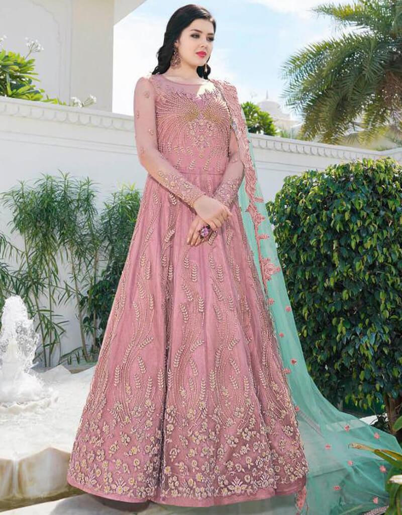 Dusty Pink Heavy Buterfly Net Suit Anarkali