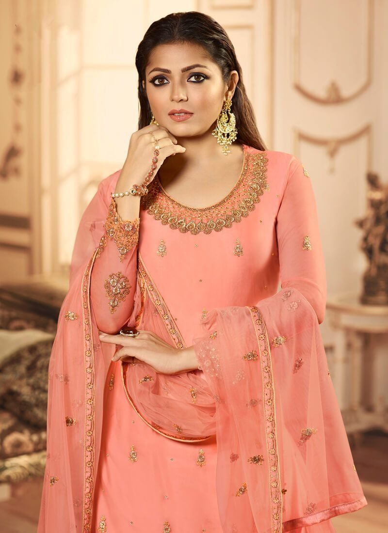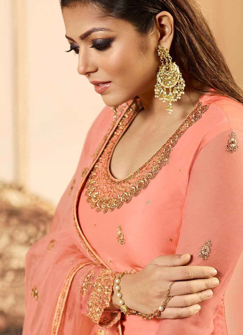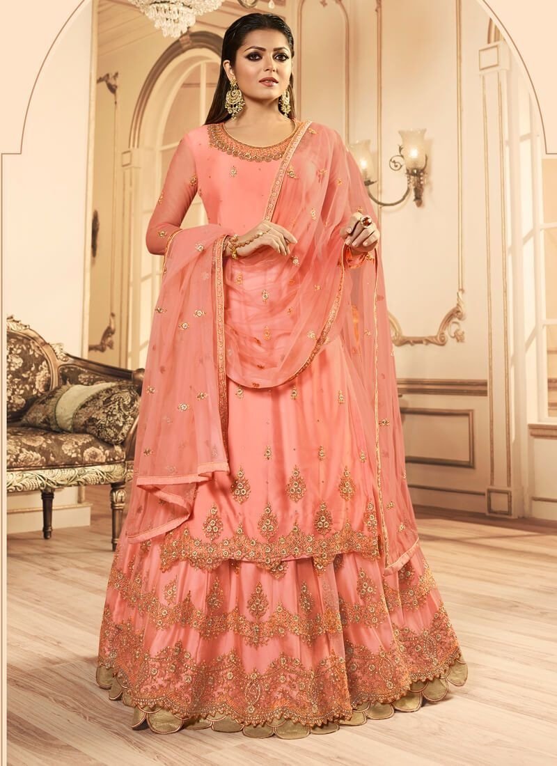 Dusty Pink Lehenga style Salwar Kameez Net