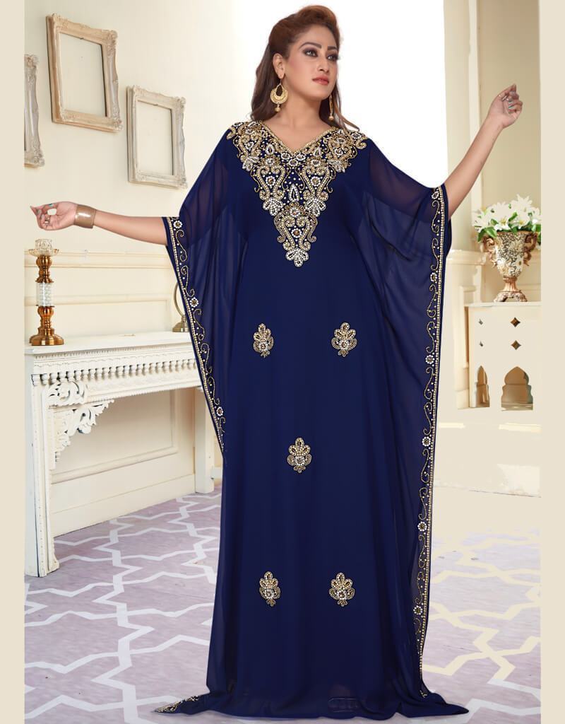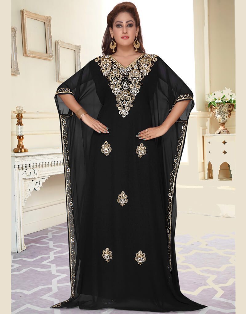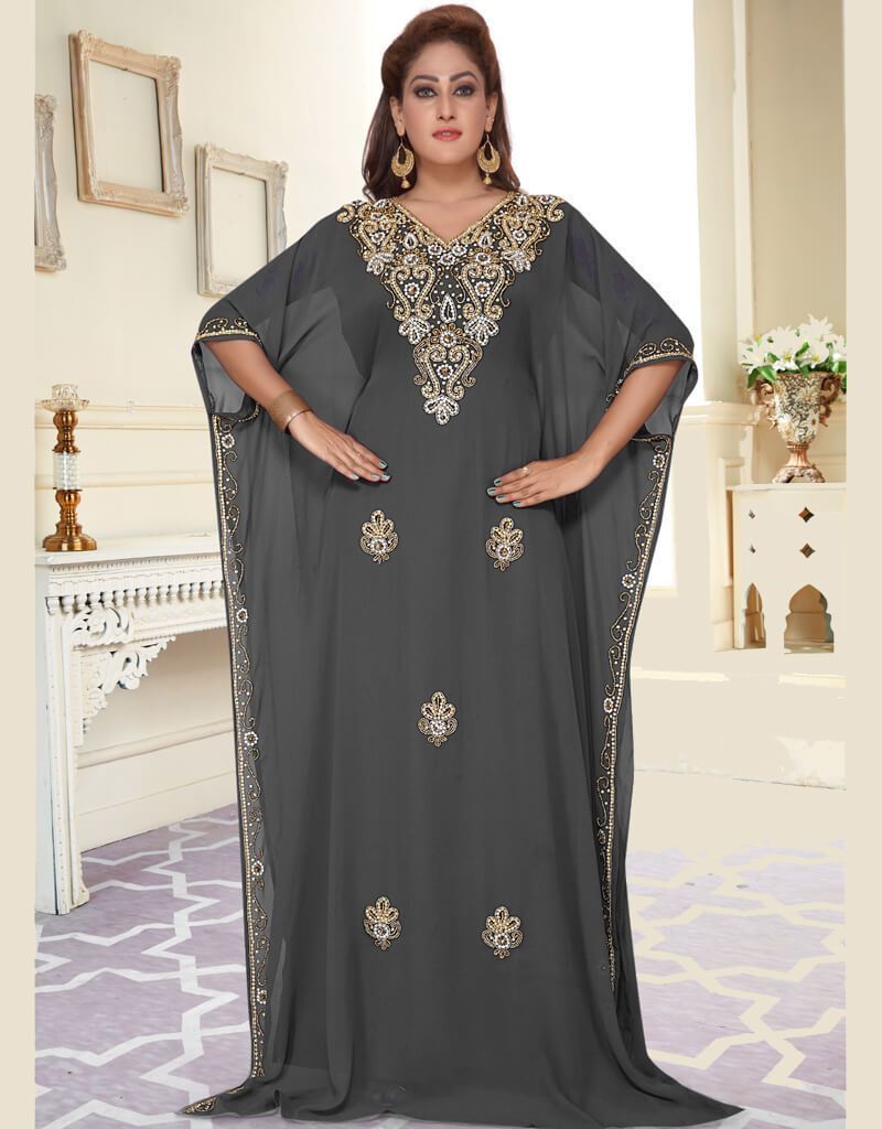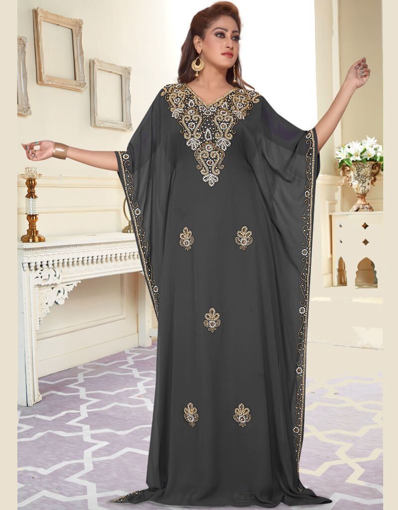 - Handbeaded establishments In Neck. Floor length Full Sleeve Kaftan. Gold beaded Elbow sleeve farasha kaftan