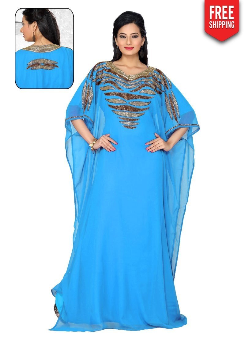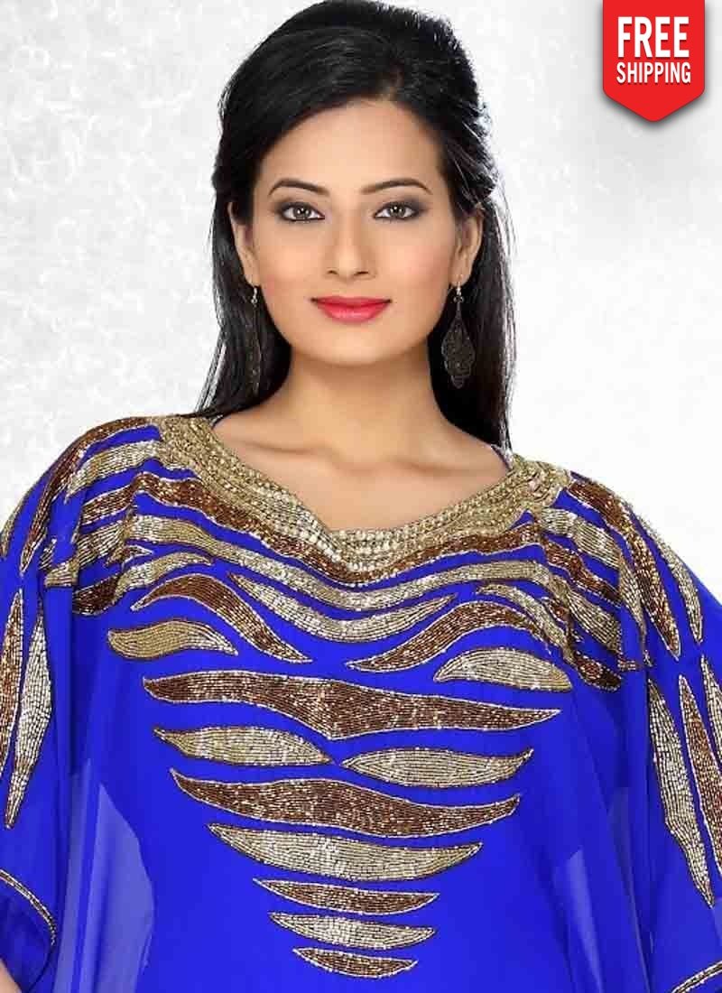 - Designed With Simplicity With A Touch Of Soberness In Its Work Makes A Masterpiece. Real Beauty Comes Out From Your Dressing Style With This Fancy Blue Embroidered Islamic Kaftans.The Brilliant Attire Creates A Dramatic Canvas With Amazing Embroidery & Hand Beaded Work.