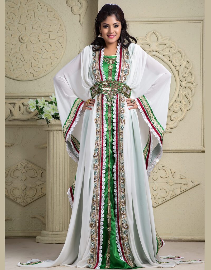 - Fancy White & Gold Dress Kaftan with embroidered veil With Waist Belt