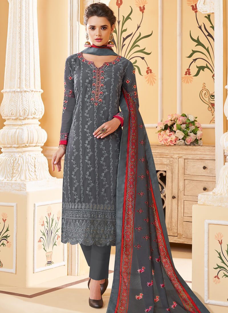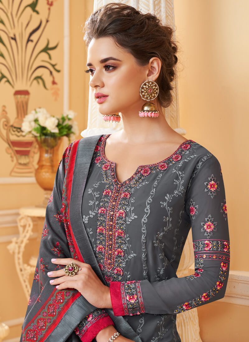 Women Salwar Suit with Heavy Thread and Embroidery with Lucknowi Work Grey color
