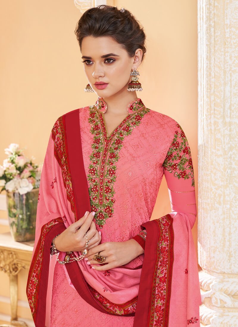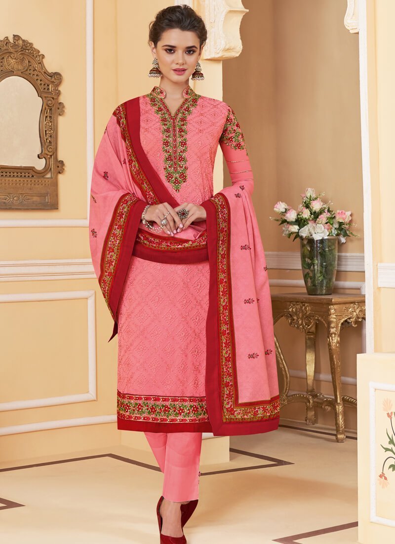 Women Salwar Suit with Heavy Thread and Embroidery with Lucknowi Work Peach color