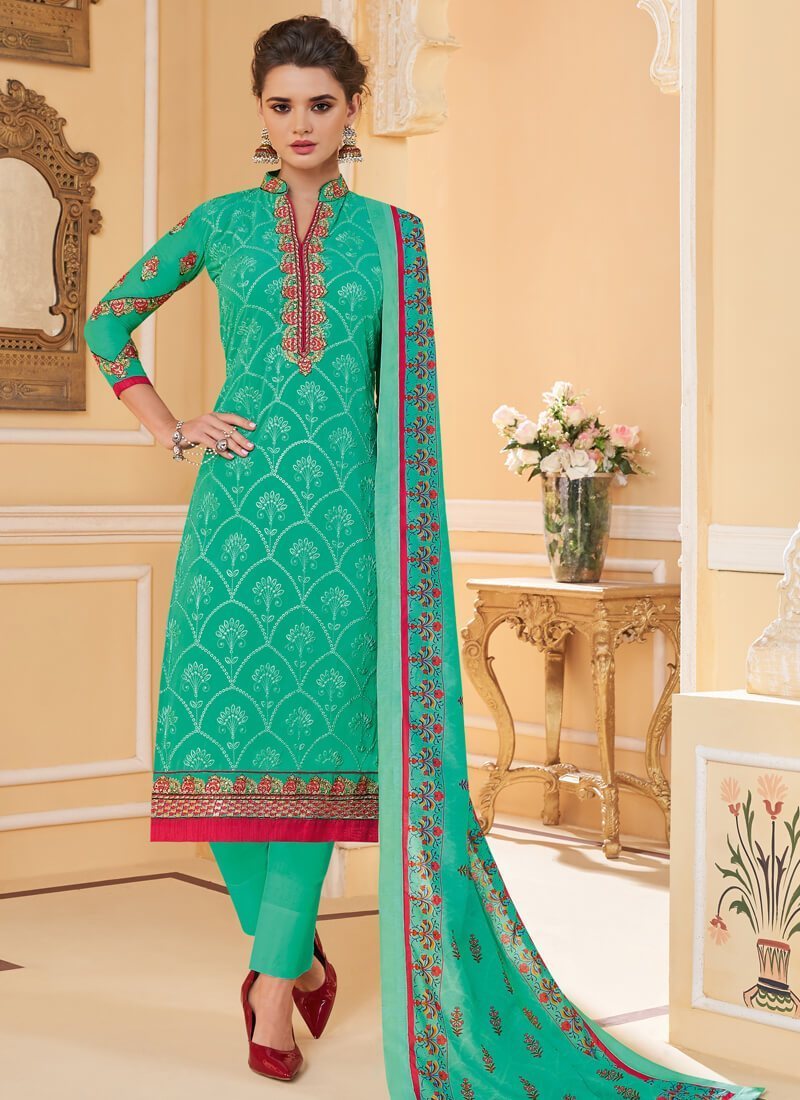 Women Salwar Suit with Heavy Thread and Embroidery with Lucknowi Work Turquoise color