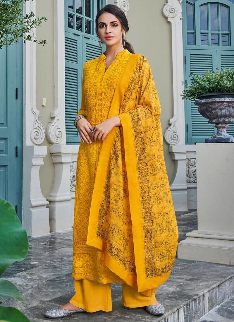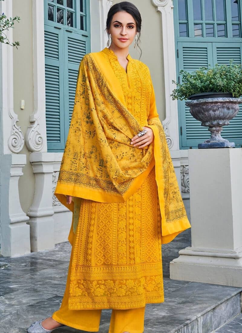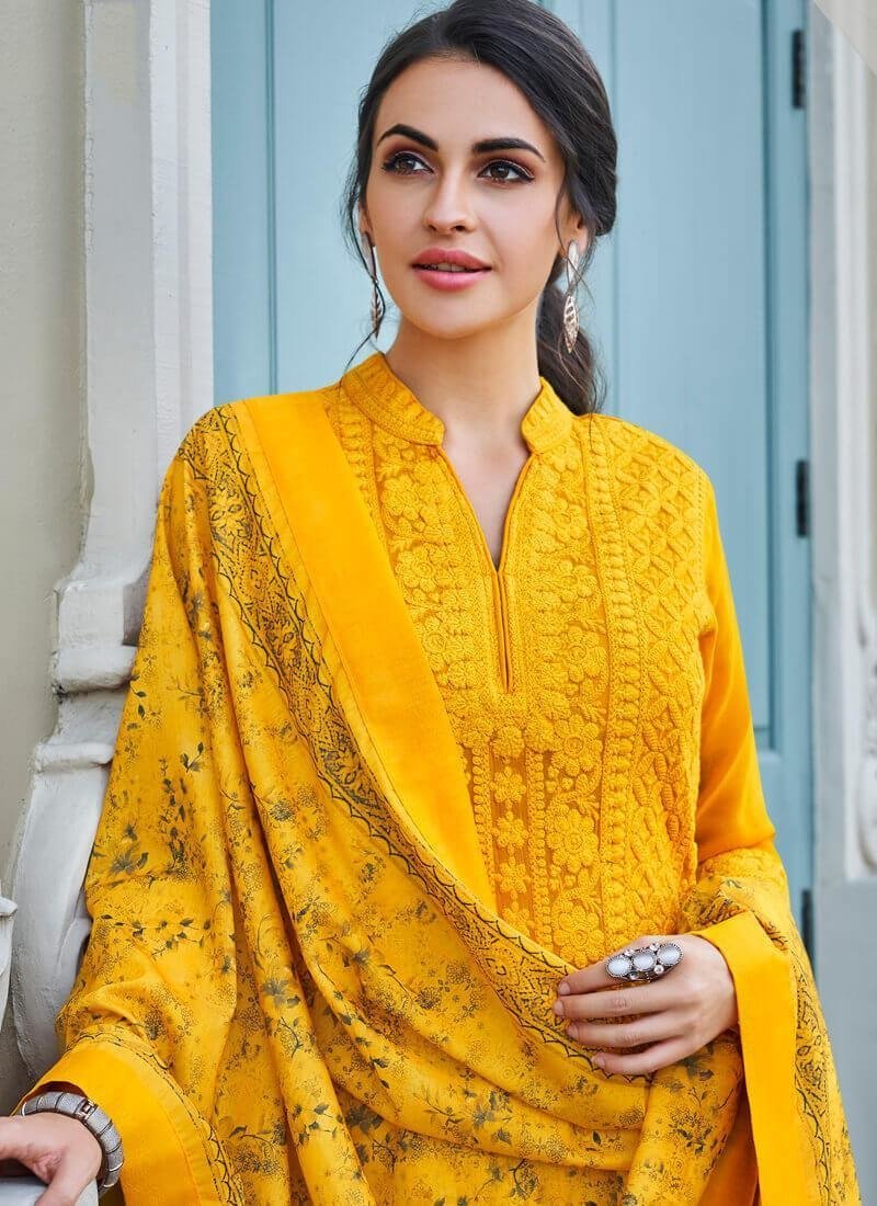 Women Salwar Suit with Heavy Thread and Embroidery with Lucknowi Work Yellow color
