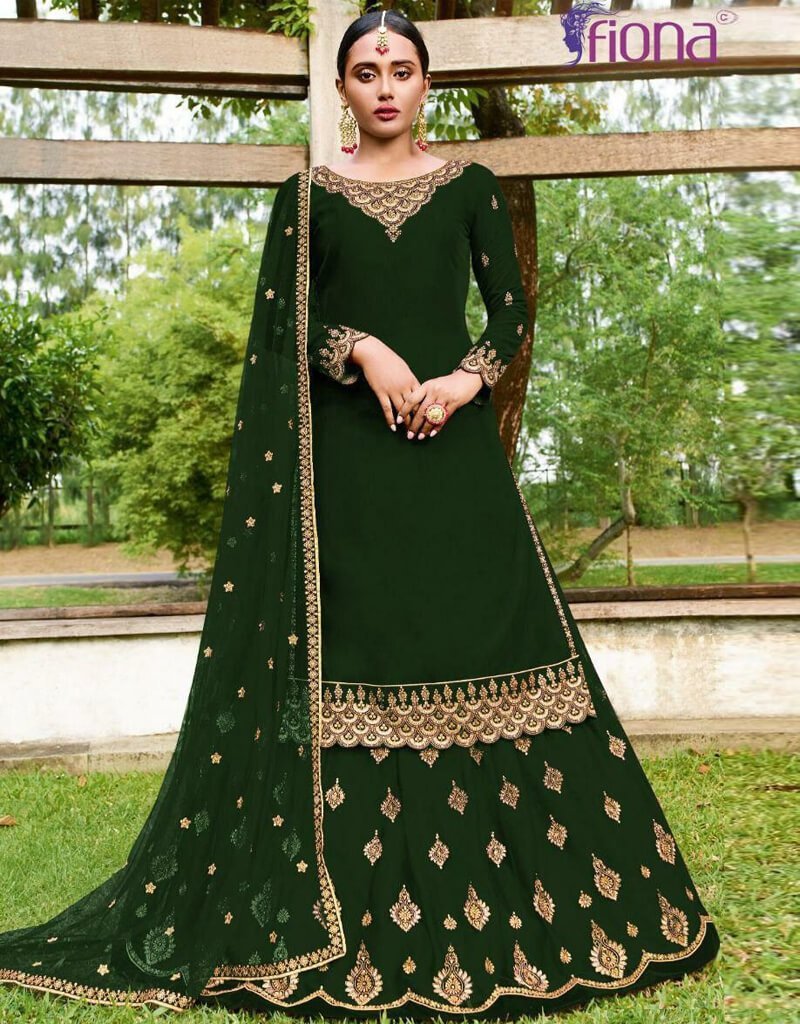Wedding Straight Green Colored Heavy Fux Georgette Top With Green Colored Heavy Butterfly Net With Full Embroidery Work Bottom.