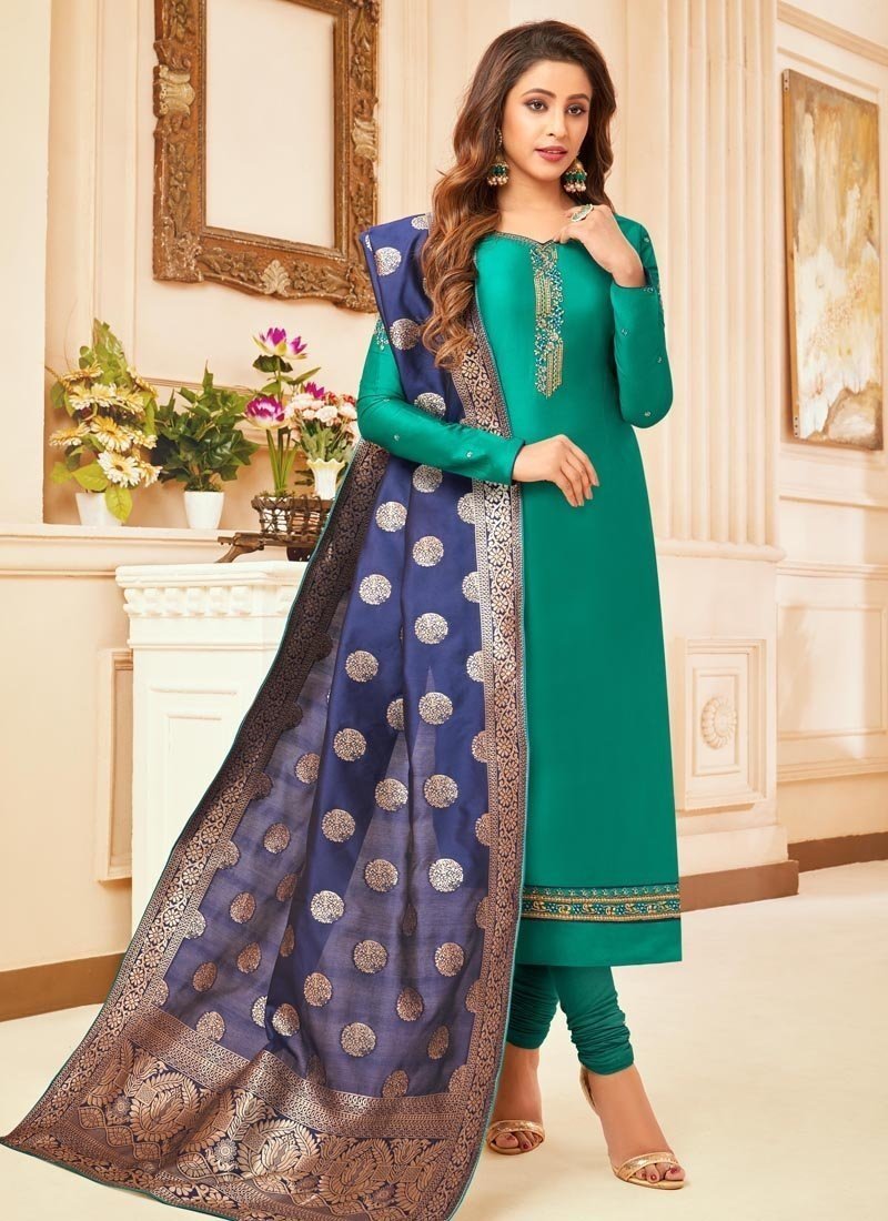 Embroidred Designer Party Wear Pure Cotton Jam Silk Salwar Suits