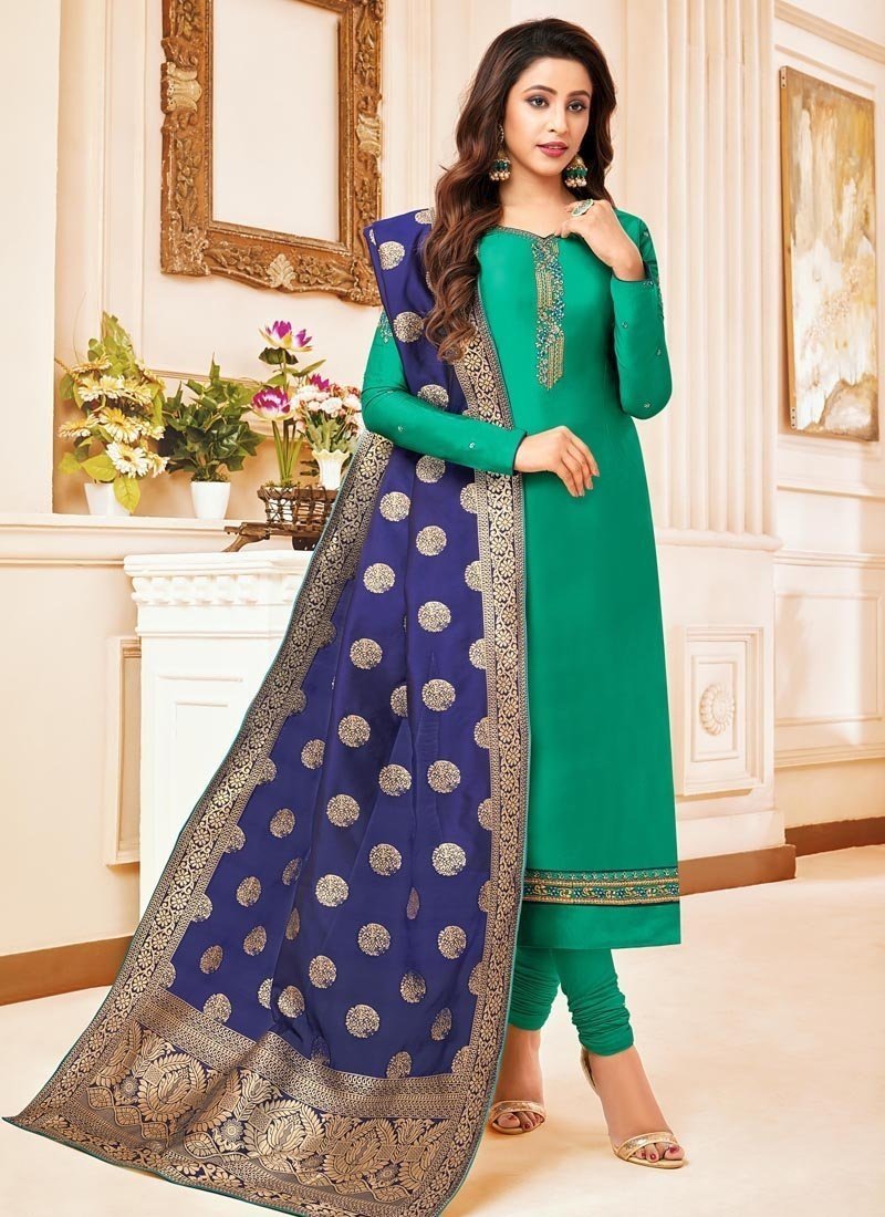 Green Pure Cotton Jam Silk Chudidar Straight