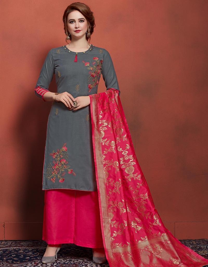 Grey Pure Cotton Chudidar Straight