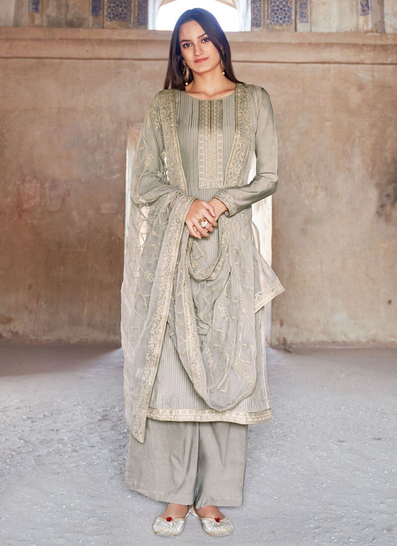 Grey Viscose Muslin Palazzo Suit