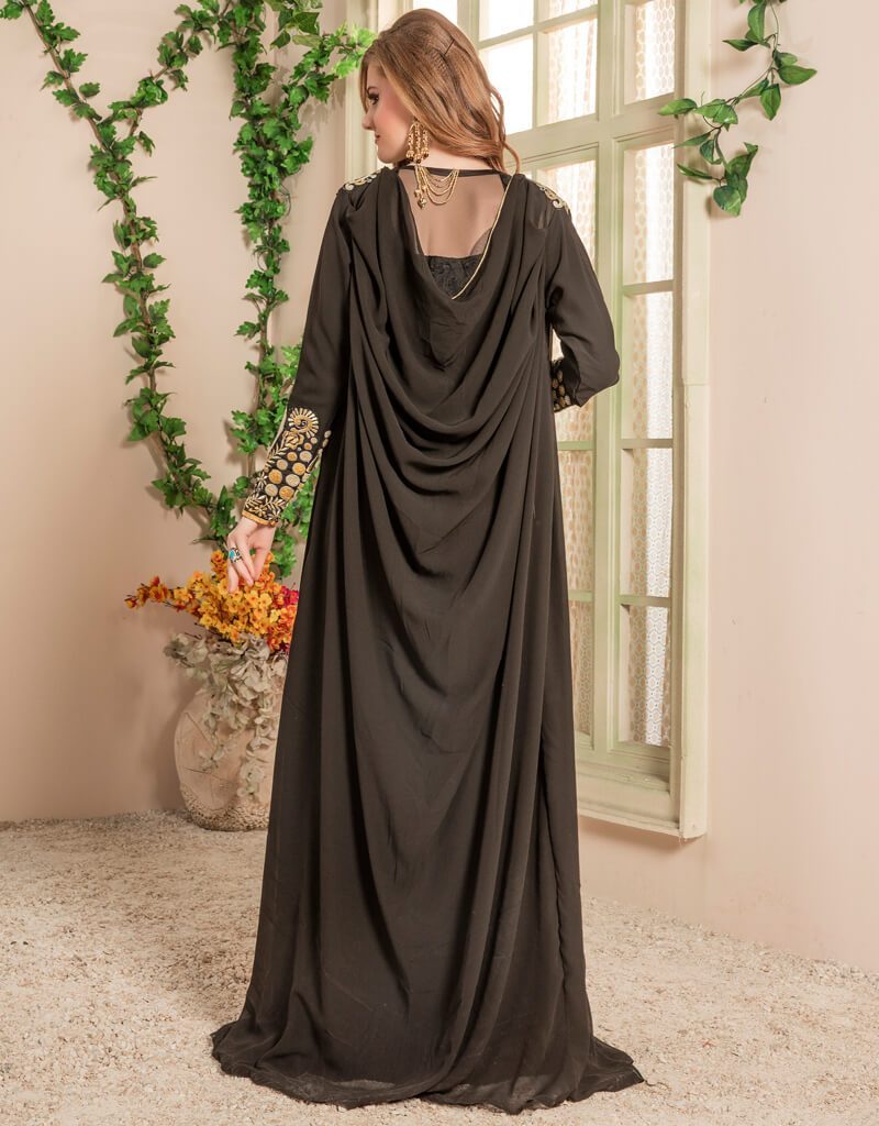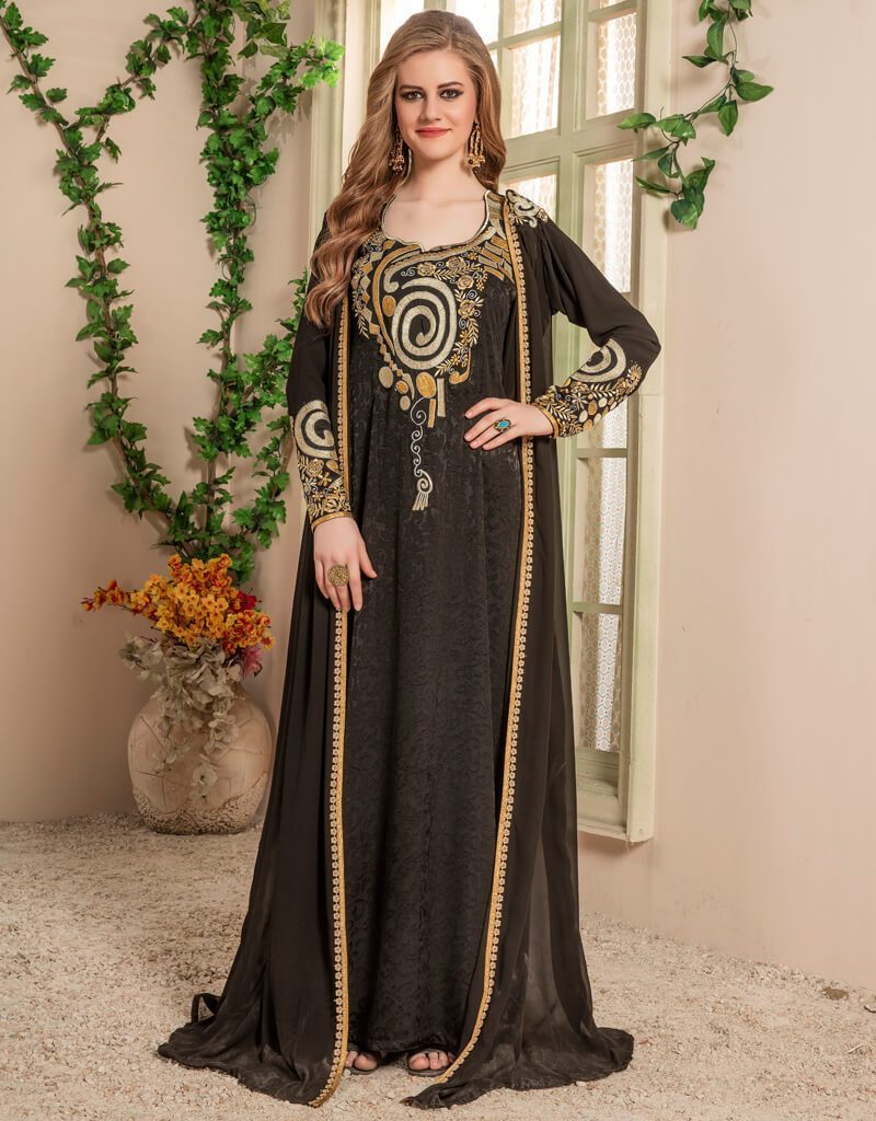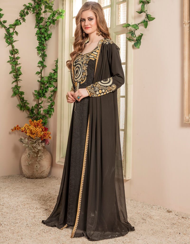 - Jacket Style Kaftan With Designer Sleeve Color in Georgette Fabric Printed Fabric with Golden Embroidered Color Establishment