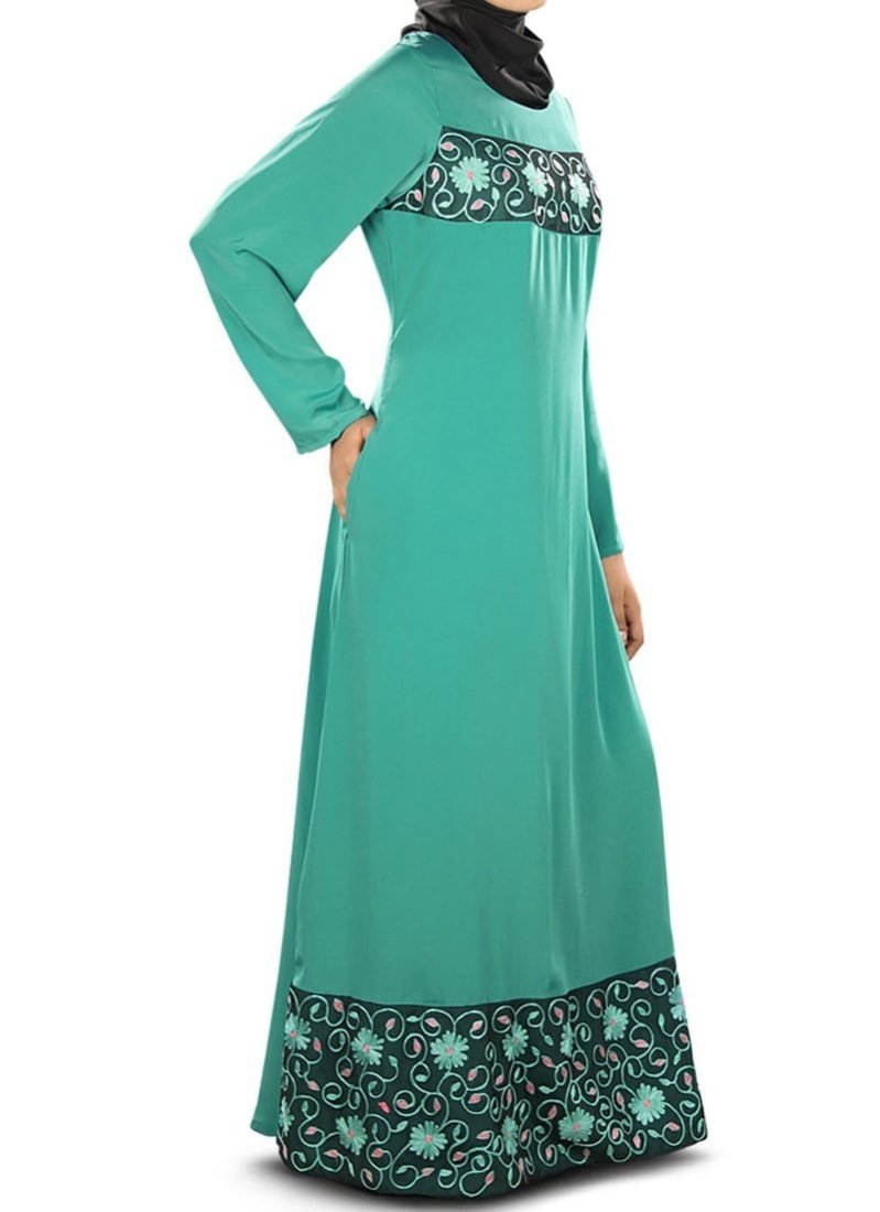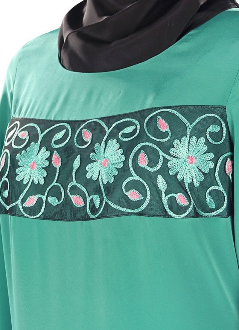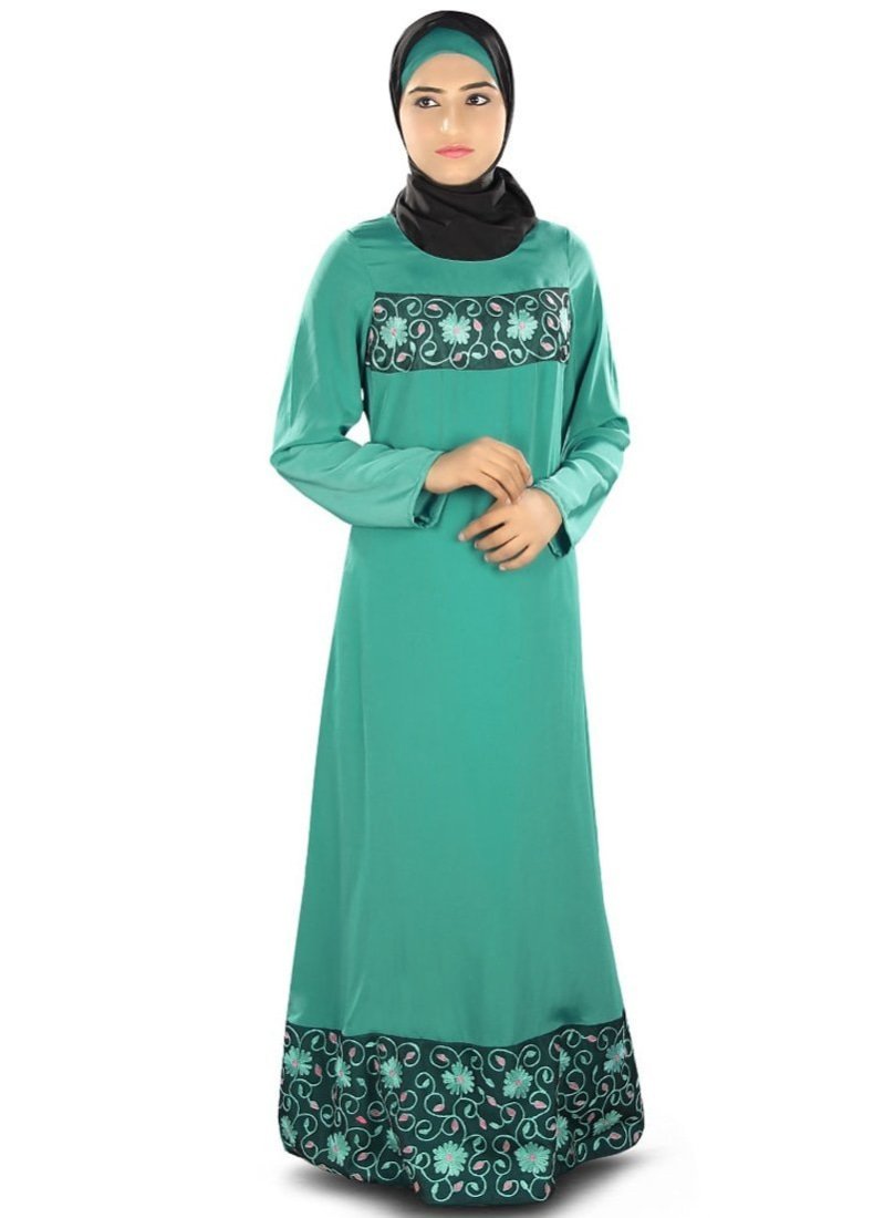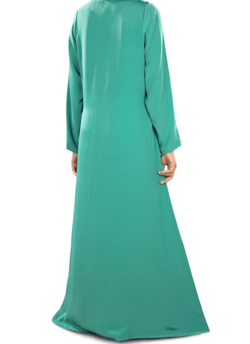 A rich look Islamic Abaya at Arabicattire, the perfect choice for any occasion, stand out from rest with this bottle green Abaya designed with beautiful embroidery