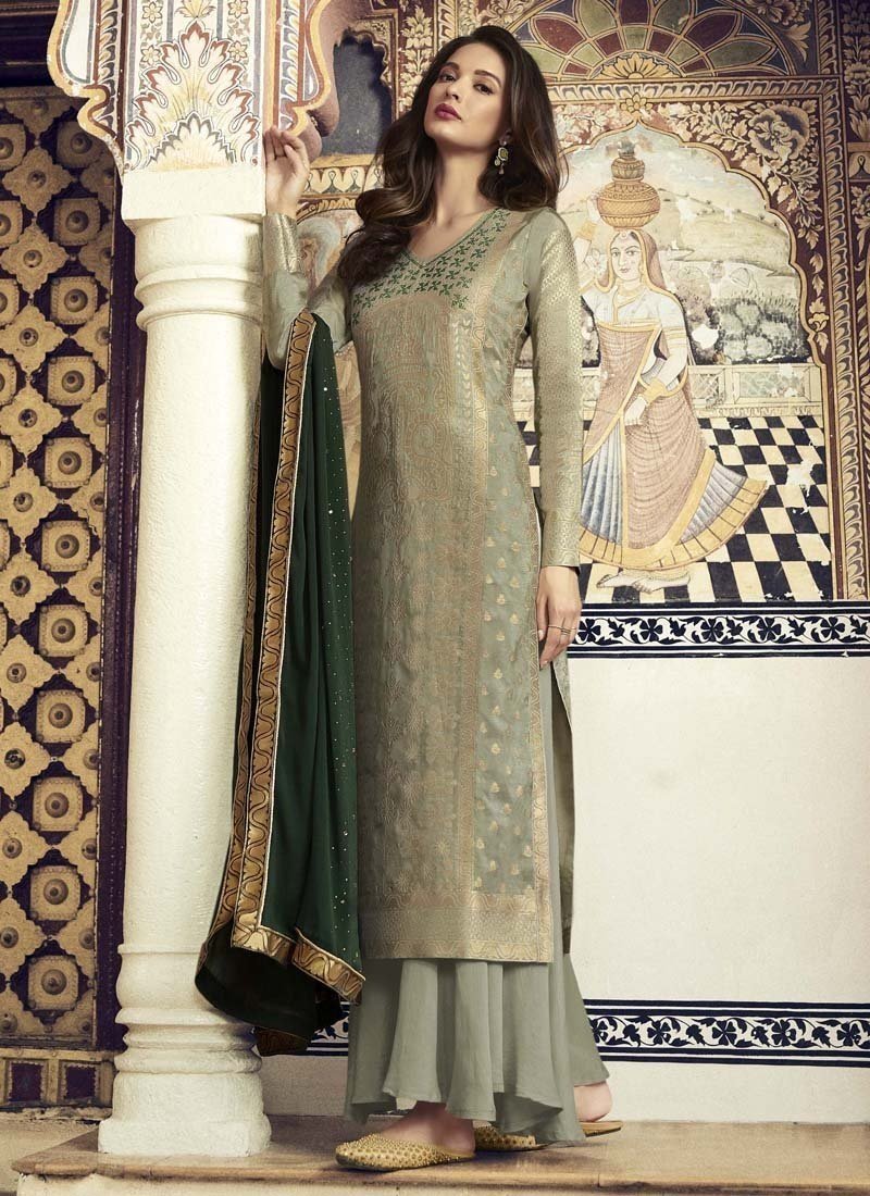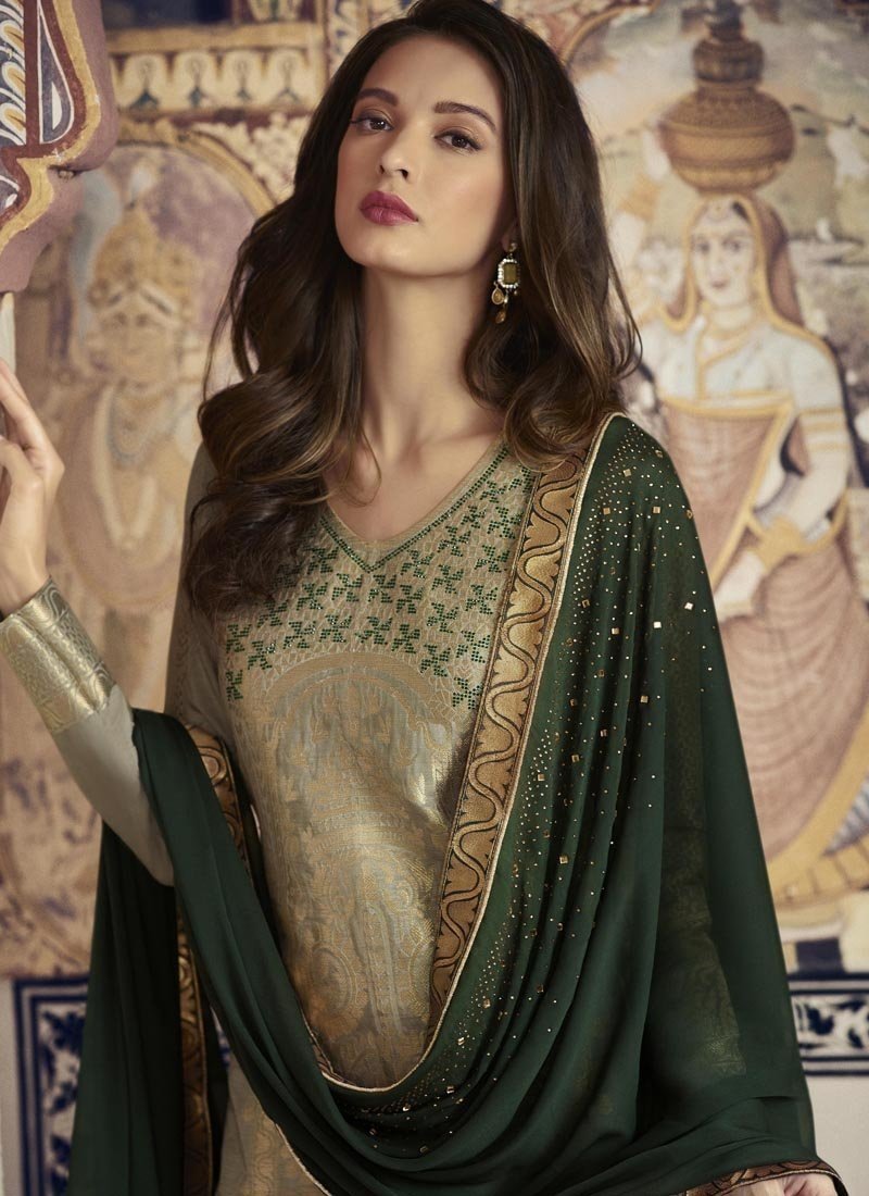 Khakhi Green Pure Dola Viscos Palazzo Suit
